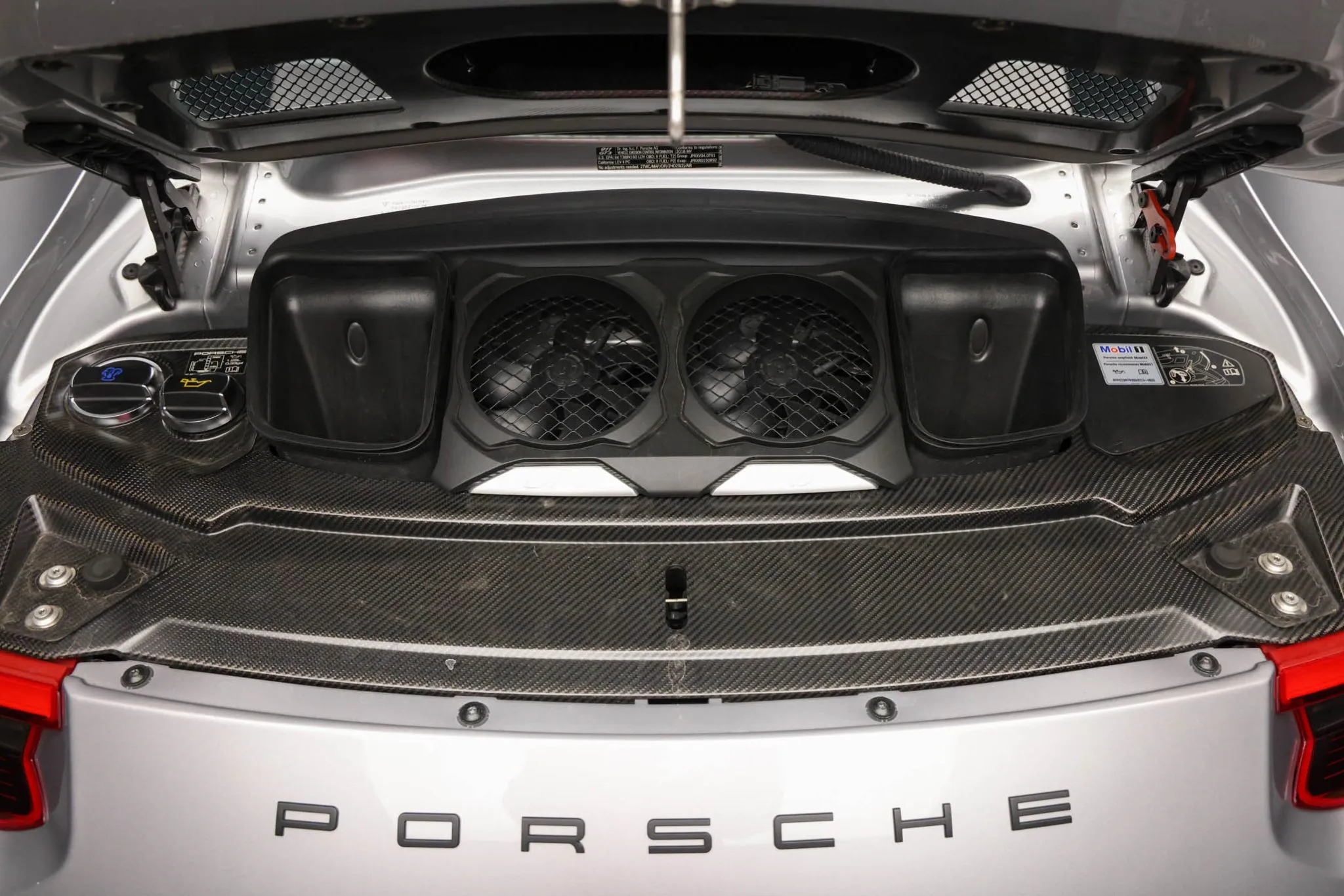 The 4.0-liter flat-six was factory rated at 500 horsepower and 339 lb-ft of torque. An oil change was performed, the clutch fluid was flushed, and the drive belt, cabin air filter, and spark plugs were replaced in December 2024.