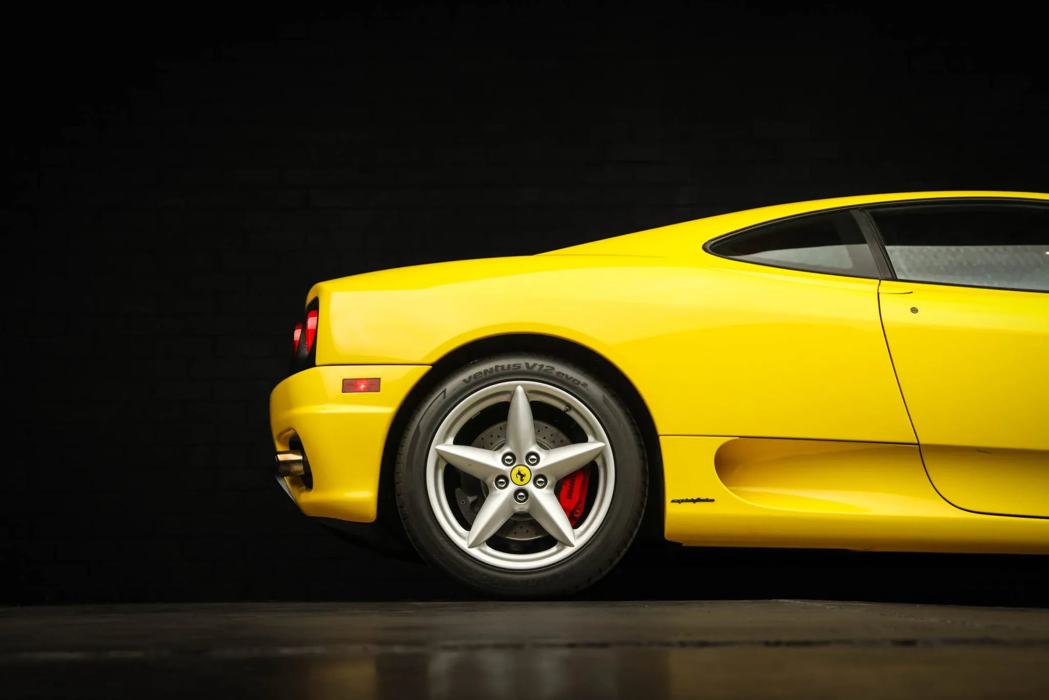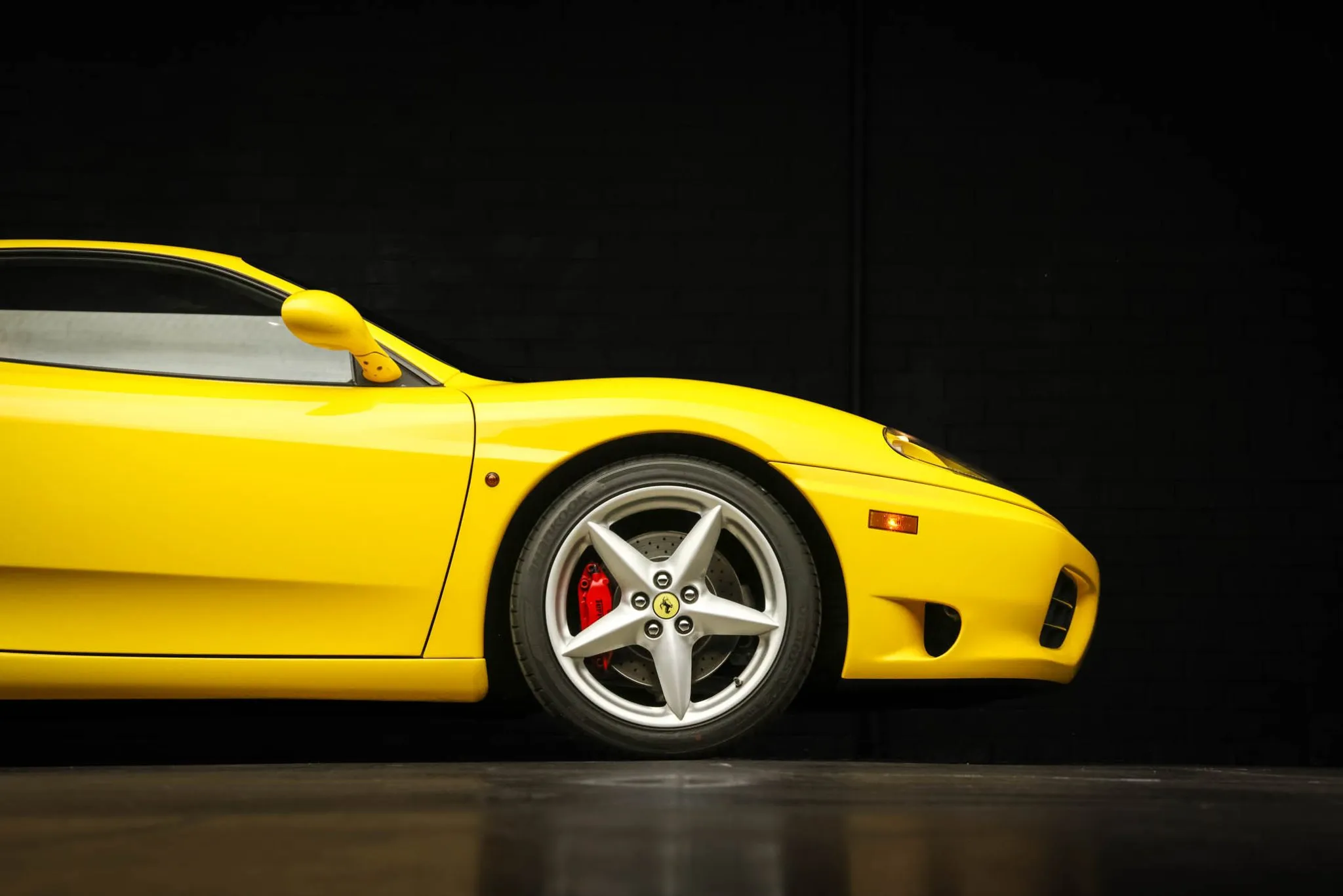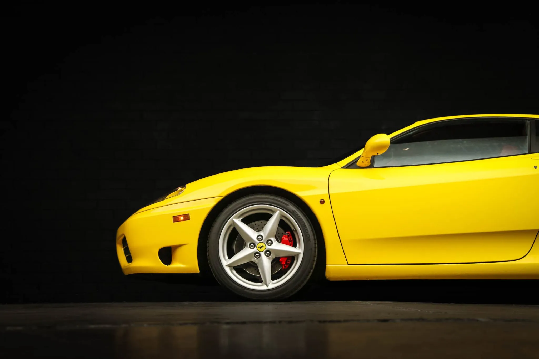 This 1999 Ferrari 360 Modena was specified new in Giallo Modena over red leather upholstery, and it now has 16k miles. Powered by a mid-mounted 3.6L flat-plane V8 linked with a six-speed F1 sequential transaxle with a limited-slip differential, the car is equipped with a Challenge-style rear grille, cross-drilled brake rotors with red calipers, 18″ alloy wheels, and air conditioning. The car was sold on BaT in February 2020 before it was acquired by the selling dealer in 2024. Work completed in preparation for the sale involved a timing belt service and a recharge of the air conditioning system. This 360 Modena is now offered in California with manufacturer’s literature, a tool kit, a car cover, two keys, a clean Carfax report, and a clean New Jersey title.