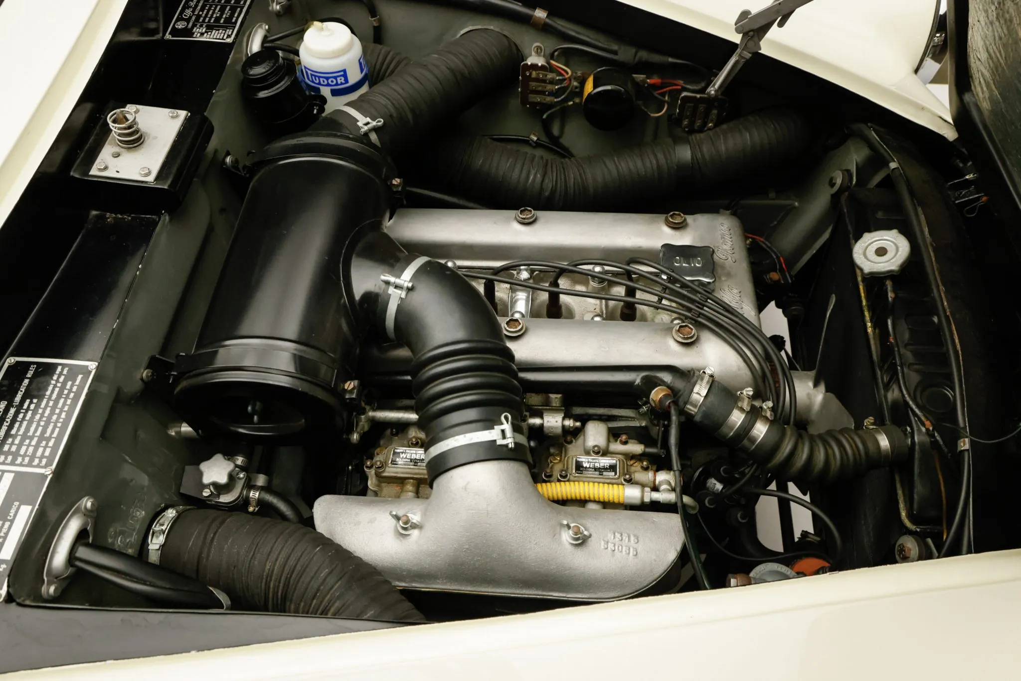 The 1,290cc twin-cam inline-four was factory equipped with dual Weber 40 DCO3 carburetors and rated at 90 horsepower. The selling dealer states that the engine was rebuilt at Engine Machine Service of Los Angeles, California, in the course of the refurbishment project. A retrofitted Facet electric fuel pump is installed out back.