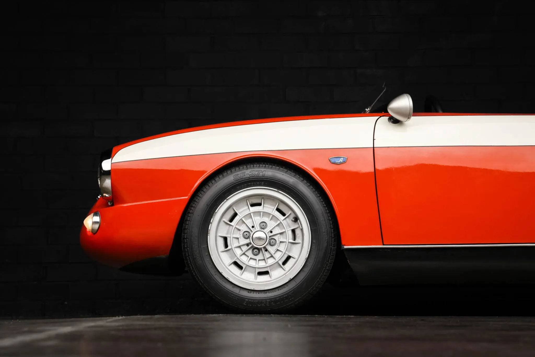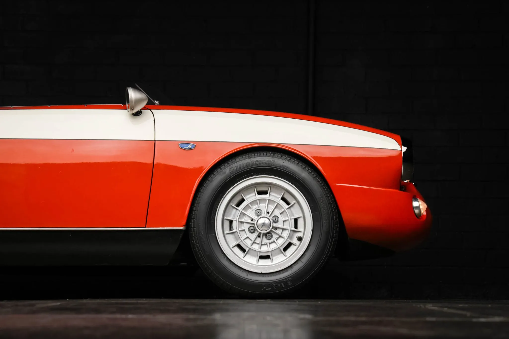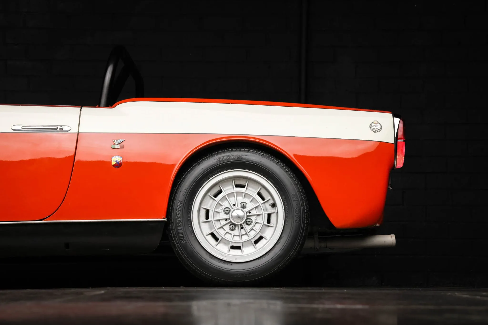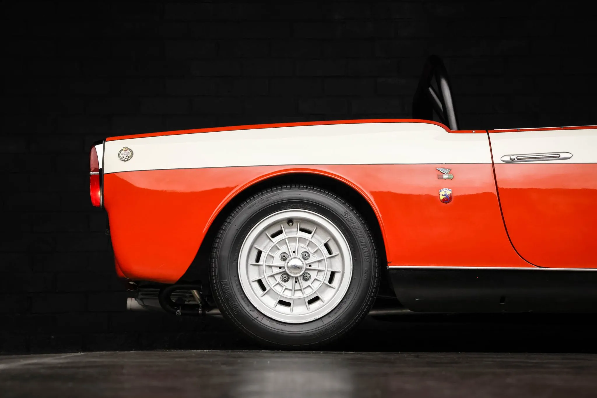 Silver-finished 13″ Campagnolo wheels are mounted with 165/70 front and 175/70 rear Bridgestone SF-371 tires.
