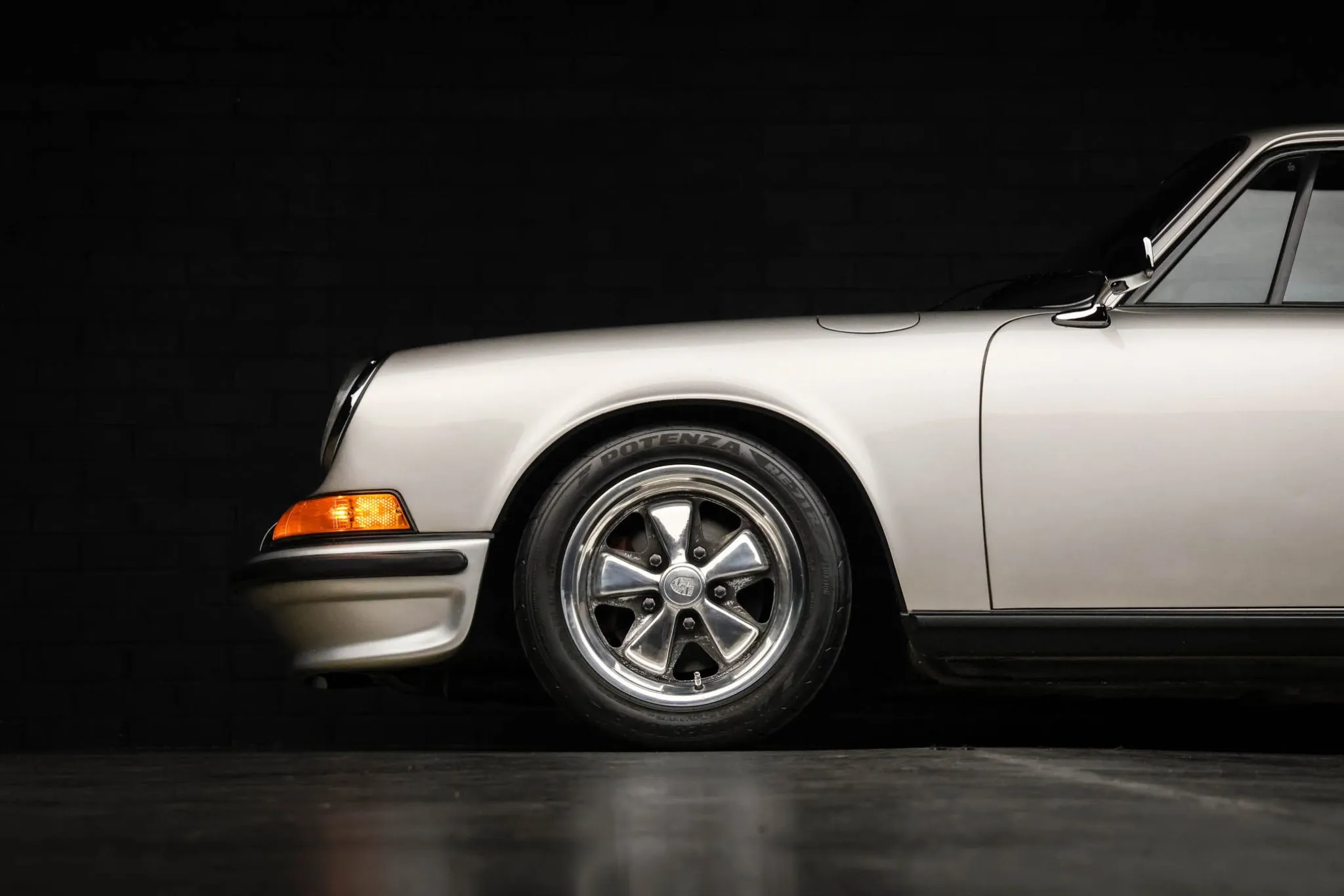 Finished from the factory in Tangerine, the car was repainted silver some time ago and the side window trim has been refinished in black. Features include H4 headlights, a 911S-style front spoiler, drilled door handles, vent windows, gold decklid badging, a 2.4 engine grille badge, and a driver-side mirror. There is a dent below the right headlight, and blemishes are pointed out by the seller in the gallery.
