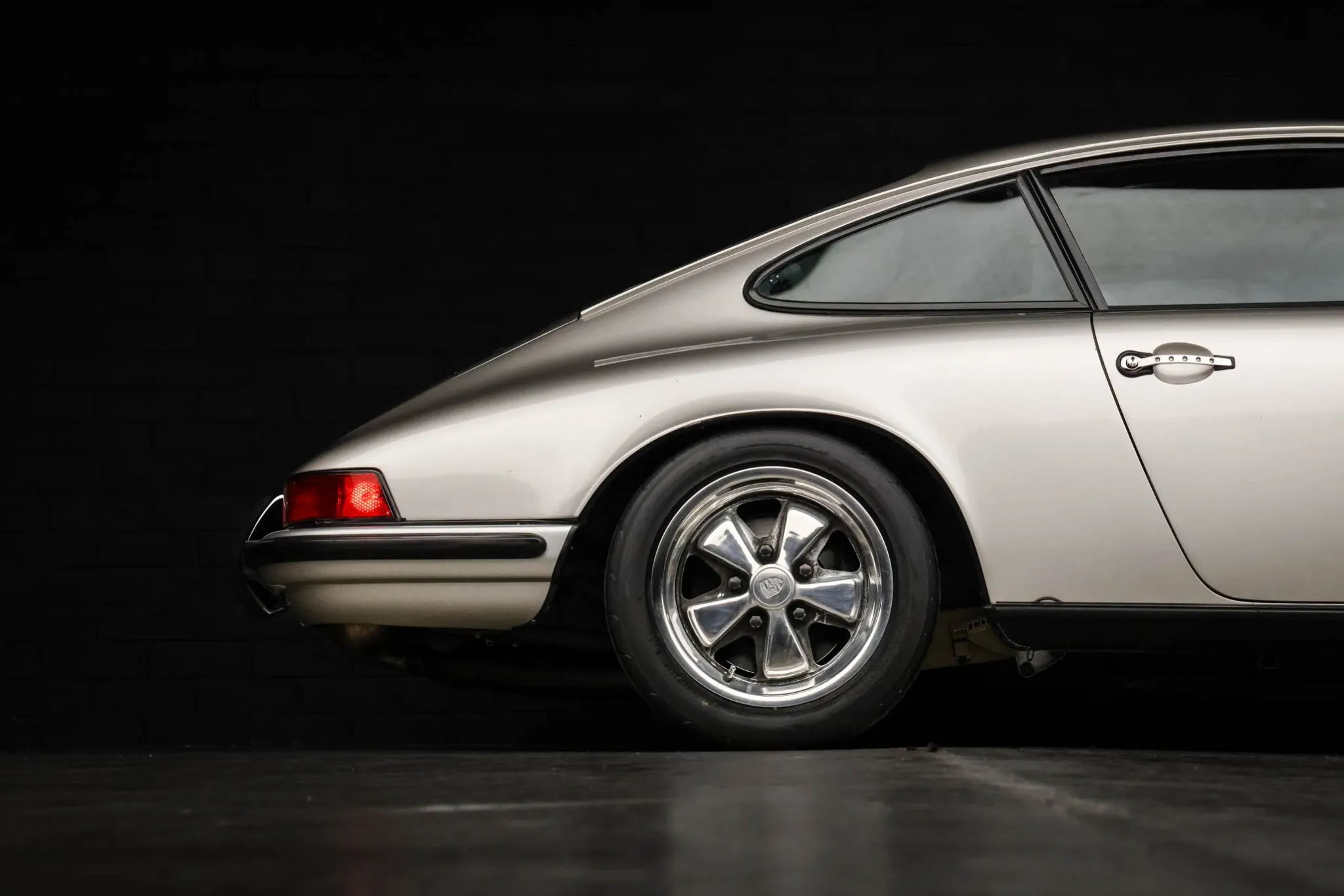 This 1970 Porsche 911T coupe was imported to the US under prior ownership and has been refinished in silver over black leather and corduroy. It is powered by a replacement flat-six equipped with fuel injection and linked with a five-speed 901 manual transaxle, and equipment includes a 911S-style front spoiler, H4 headlights, black window trim, polished 15″ Fuchs alloy wheels, aftermarket fixed-back bucket seats, a Porsche Classic radio with navigation, a 917-style shift knob, air conditioning, and a MOMO steering wheel. This longhood 911T coupe is now offered on dealer consignment with a California title.