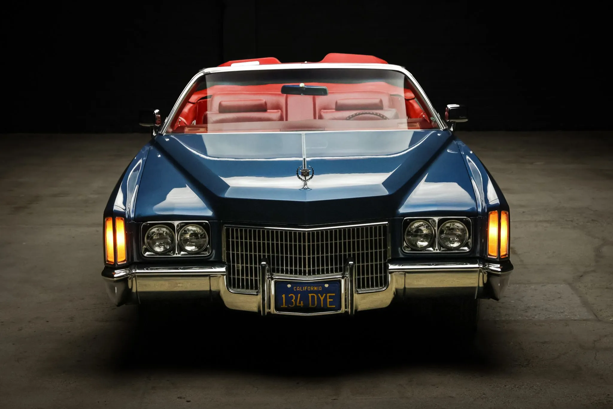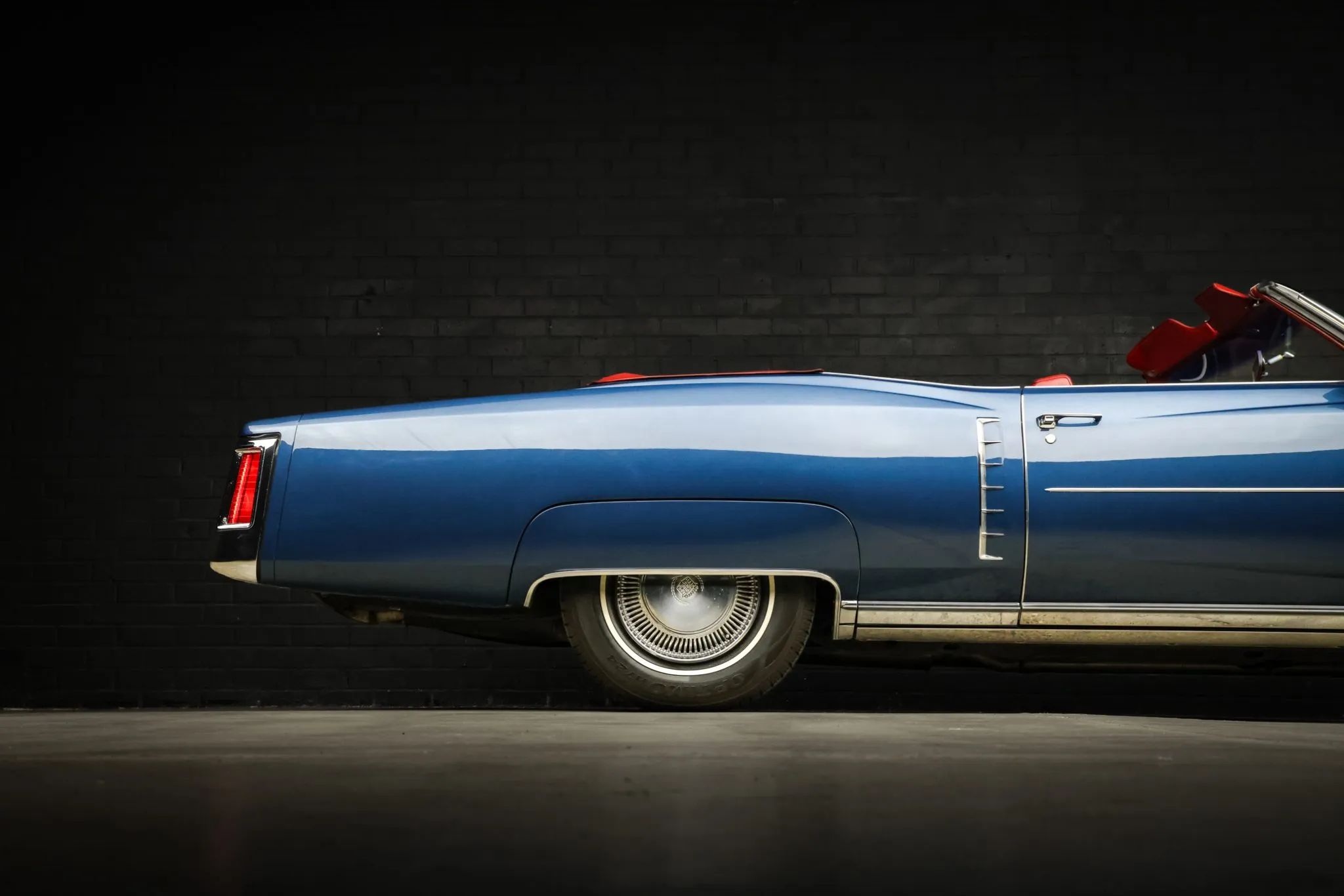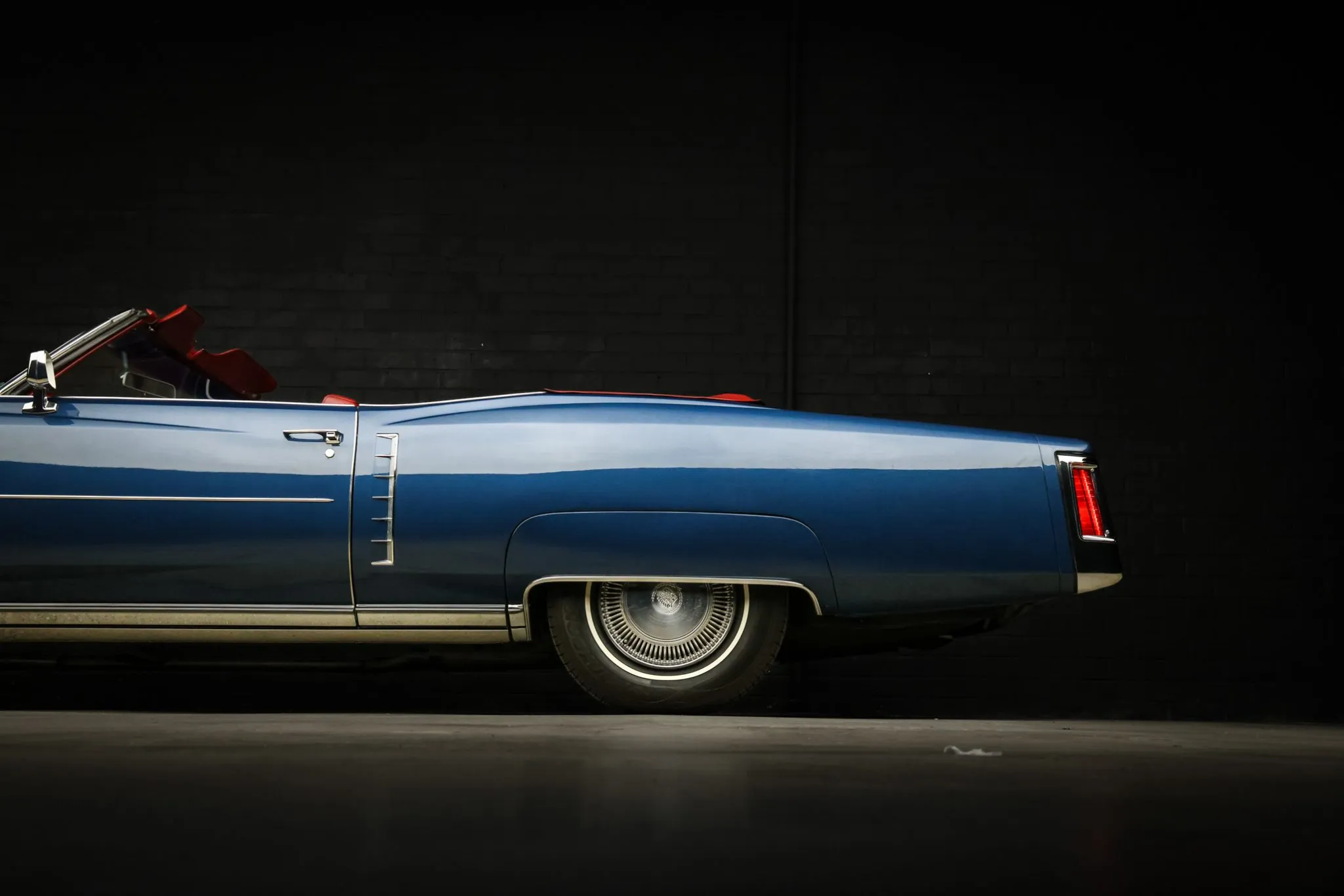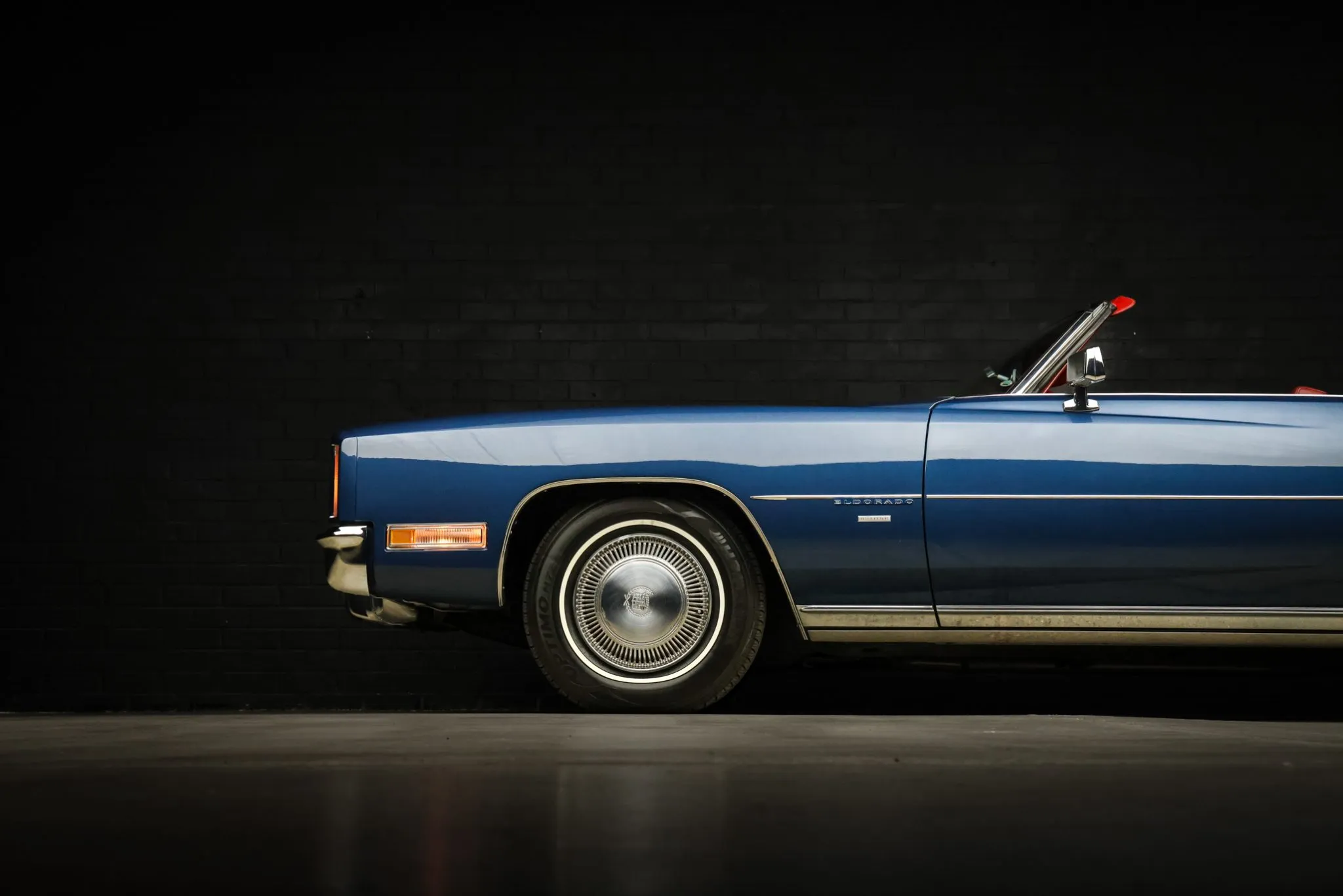 This 1971 Cadillac Eldorado convertible is finished in Brittany Blue over Carmine leather and is powered by a 500ci V8 paired with a three-speed automatic transmission. Features include a power-operated white soft top, an Automatic Level Control rear suspension, front disc brakes, 15″ steel wheels, a power-adjustable front bench, automatic climate control, and power windows. Now showing 51k miles, the car was previously listed on BaT in April 2025 and was acquired by the current owner later that year. This Eldorado Convertible is offered on dealer consignment with a California title.