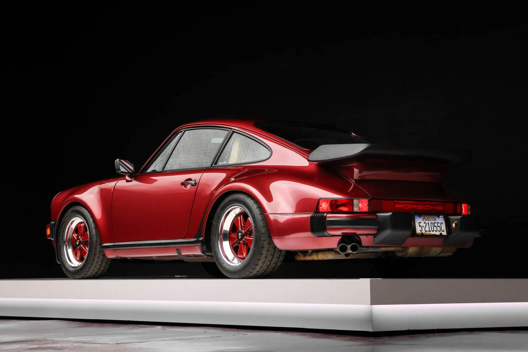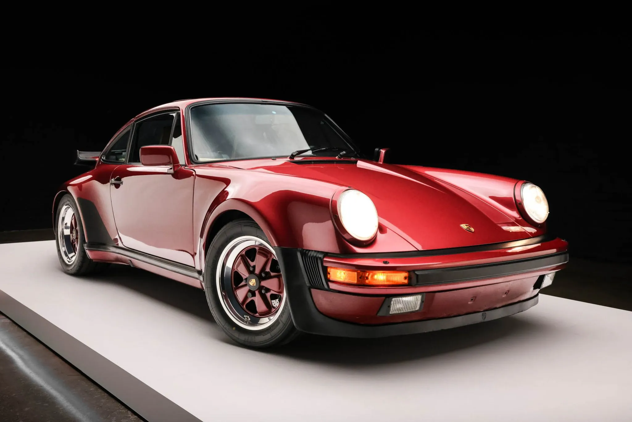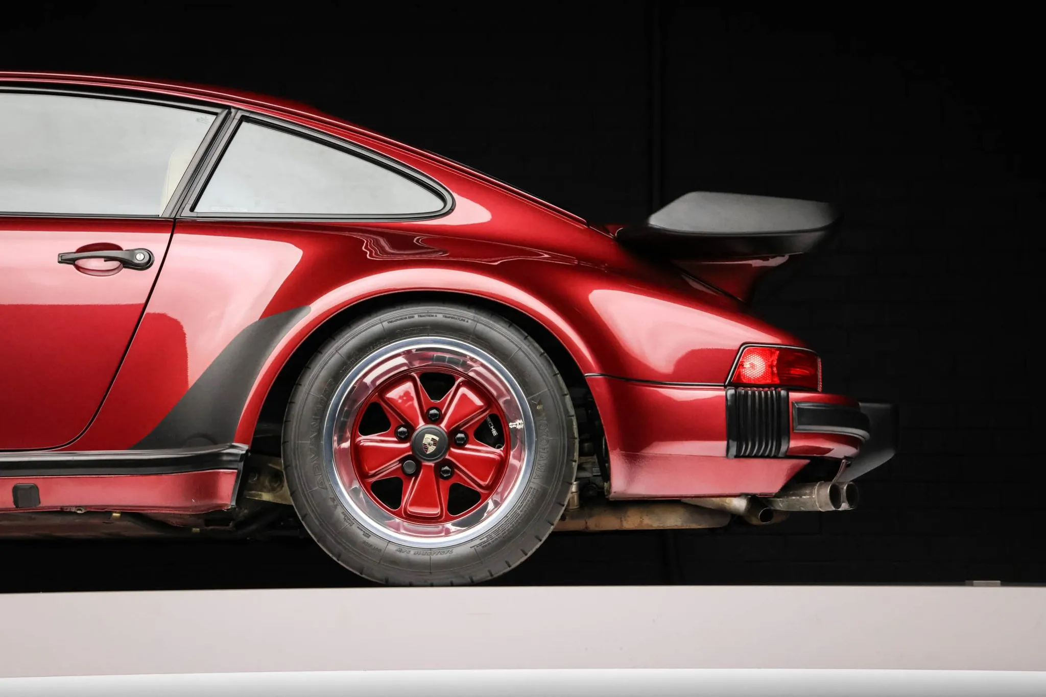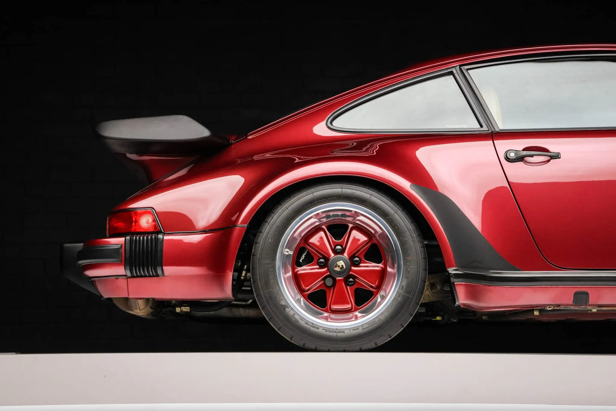 This 1989 Porsche 911 Turbo coupe was ordered new through Carlsen Porsche in Palo Alto, California, in Velvet Red Metallic over a Cashmere Beige interior with sport seats. The car is powered by a turbocharged 3.3-liter flat-six linked with a five-speed G50 manual transaxle and a limited-slip differential, and it is equipped with Velvet Red-finished 16″ Fuchs alloy wheels, four-wheel cross-drilled and ventilated disc brakes, a power sunroof, front and rear spoilers, a Blaupunkt cassette radio, an analog clock, and air conditioning. This 930 Turbo coupe was purchased by the current owner in January 2024, shows 54k miles, and is now offered on dealer consignment in California with the owner’s manual, a stamped maintenance log, a collection of service records, a clean Carfax report, and a clean Montana title.