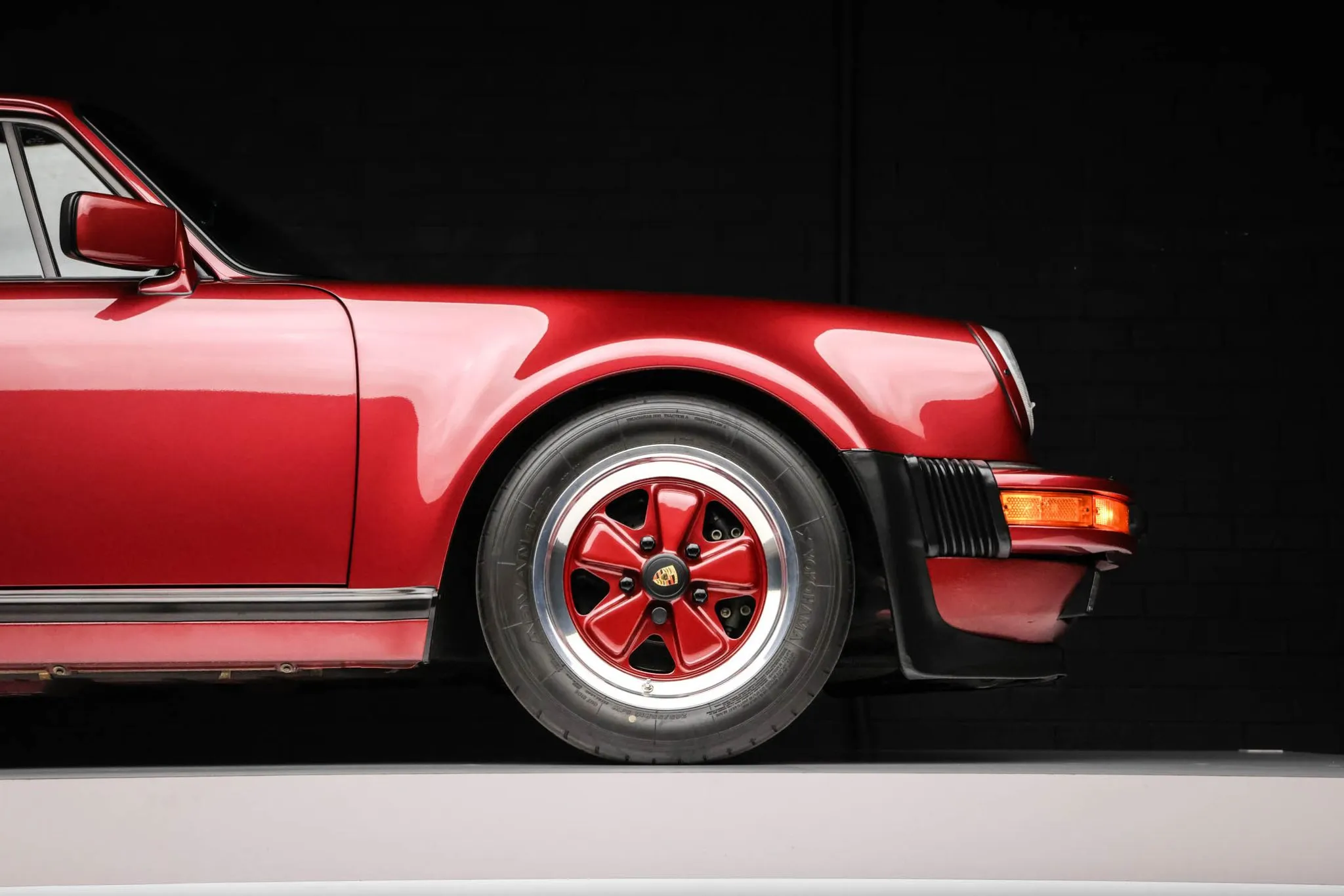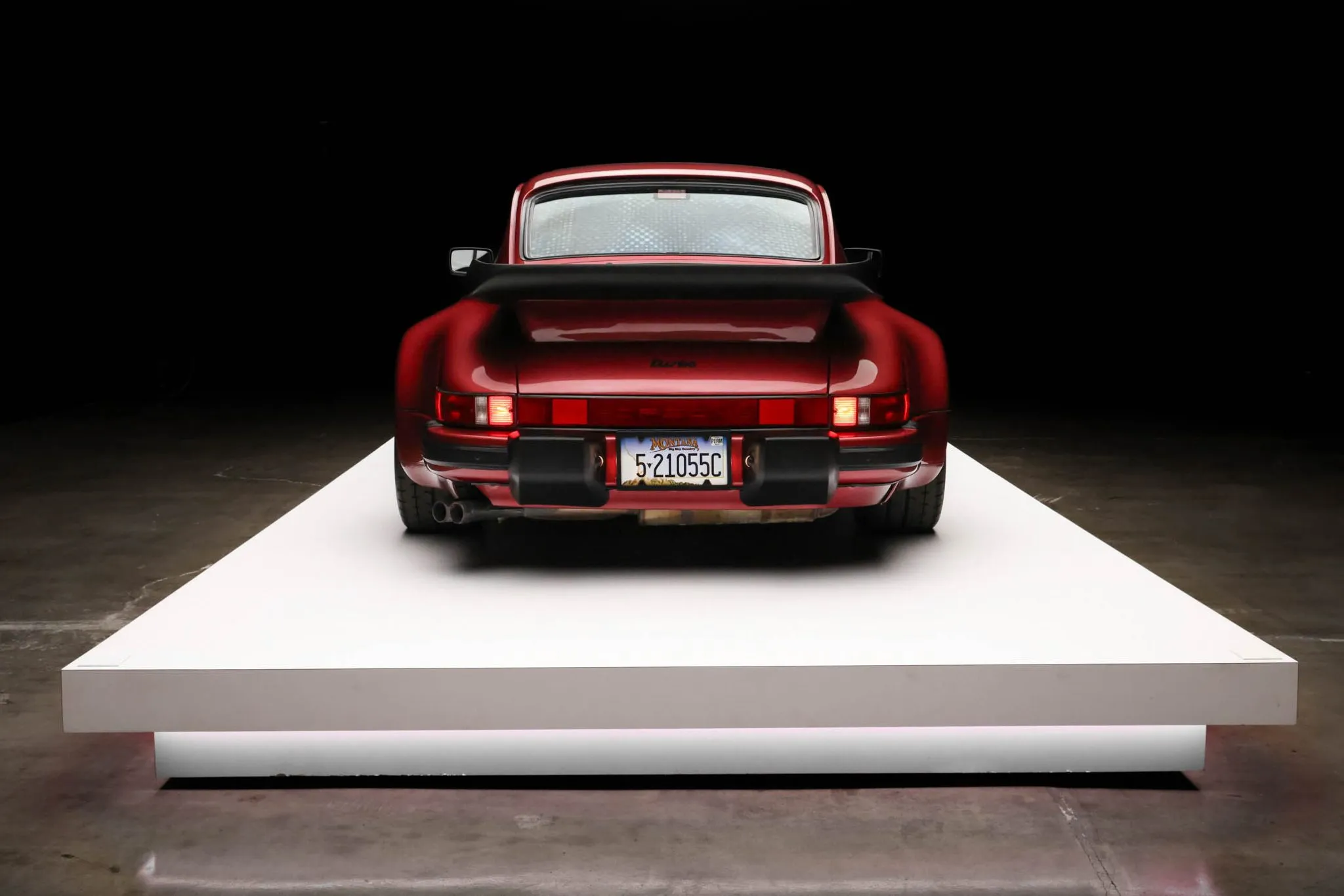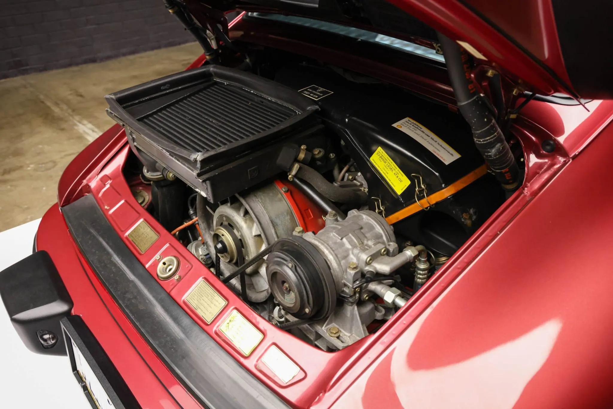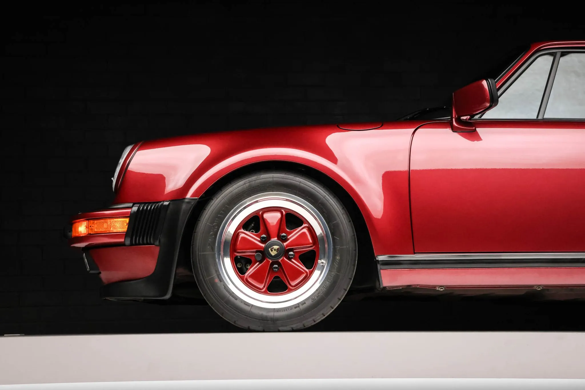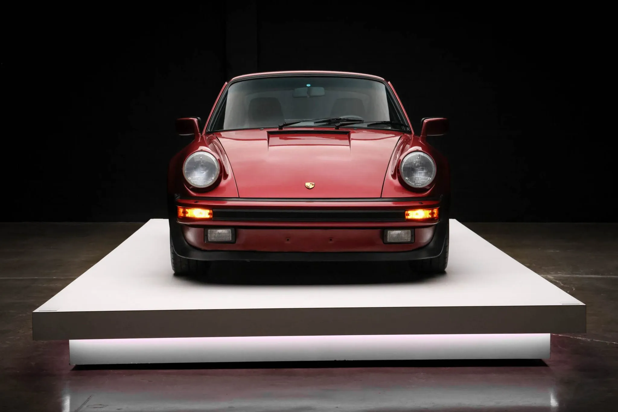 This 1989 Porsche 911 Turbo coupe was ordered new through Carlsen Porsche in Palo Alto, California, in Velvet Red Metallic over a Cashmere Beige interior with sport seats. The car is powered by a turbocharged 3.3-liter flat-six linked with a five-speed G50 manual transaxle and a limited-slip differential, and it is equipped with Velvet Red-finished 16″ Fuchs alloy wheels, four-wheel cross-drilled and ventilated disc brakes, a power sunroof, front and rear spoilers, a Blaupunkt cassette radio, an analog clock, and air conditioning. This 930 Turbo coupe was purchased by the current owner in January 2024, shows 54k miles, and is now offered on dealer consignment in California with the owner’s manual, a stamped maintenance log, a collection of service records, a clean Carfax report, and a clean Montana title.
