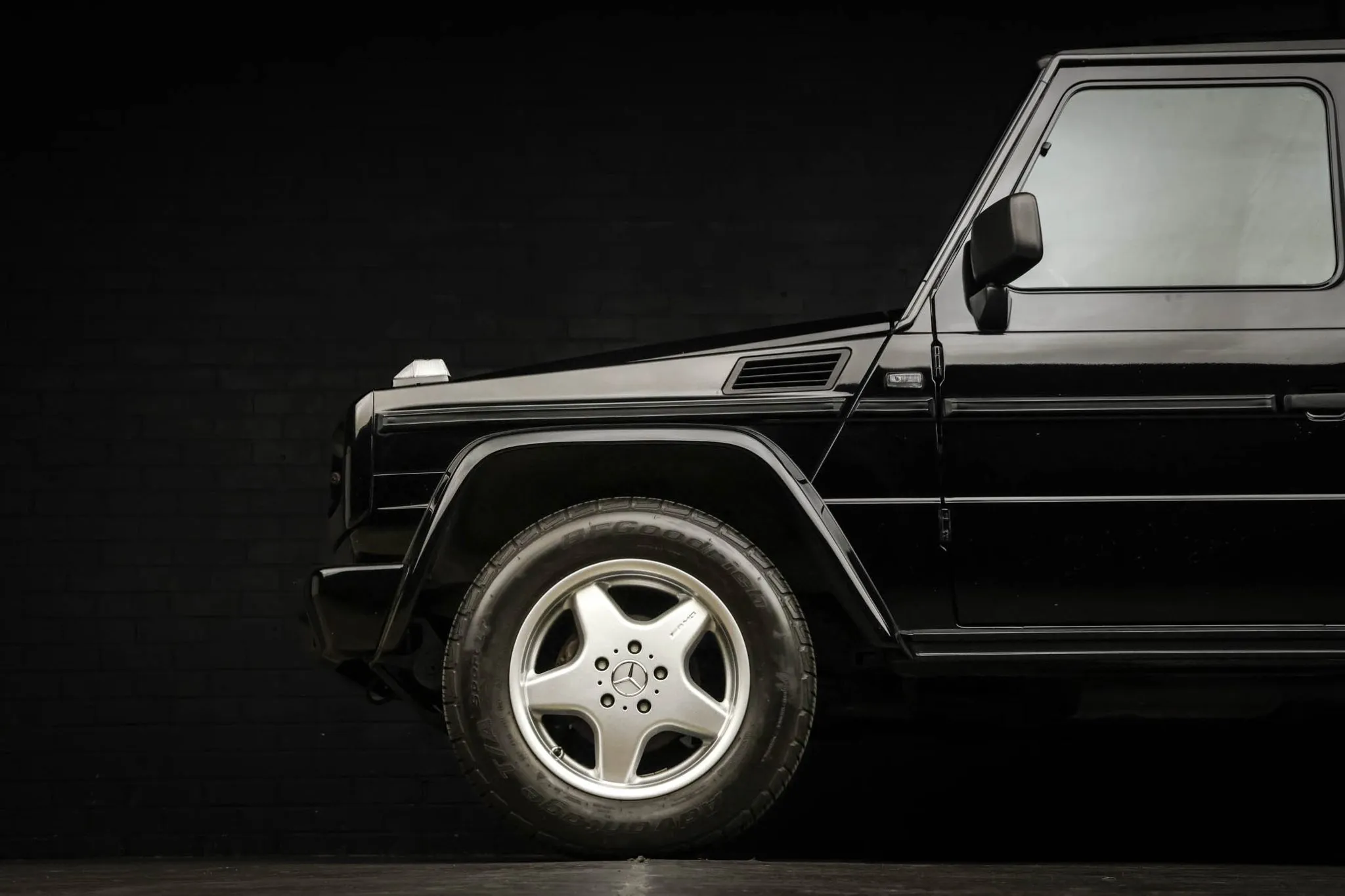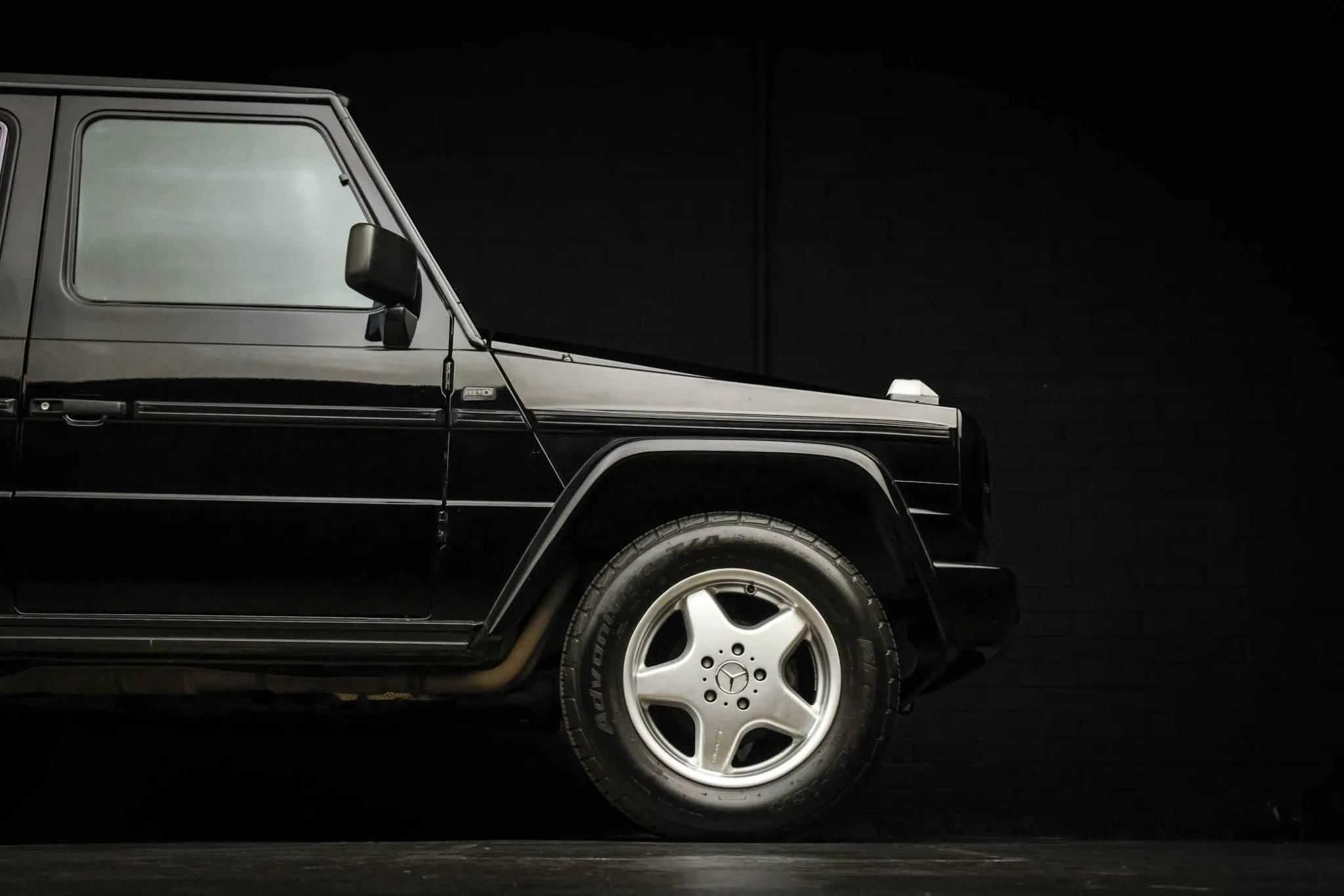 Silver-finished 18″ AMG five-spoke alloy wheels are mounted with 265/60 BFGoodrich Advantage T/A Sport LT tires, and a matching spare and wheel are secured at the rear. Braking is provided by front discs and rear drums.