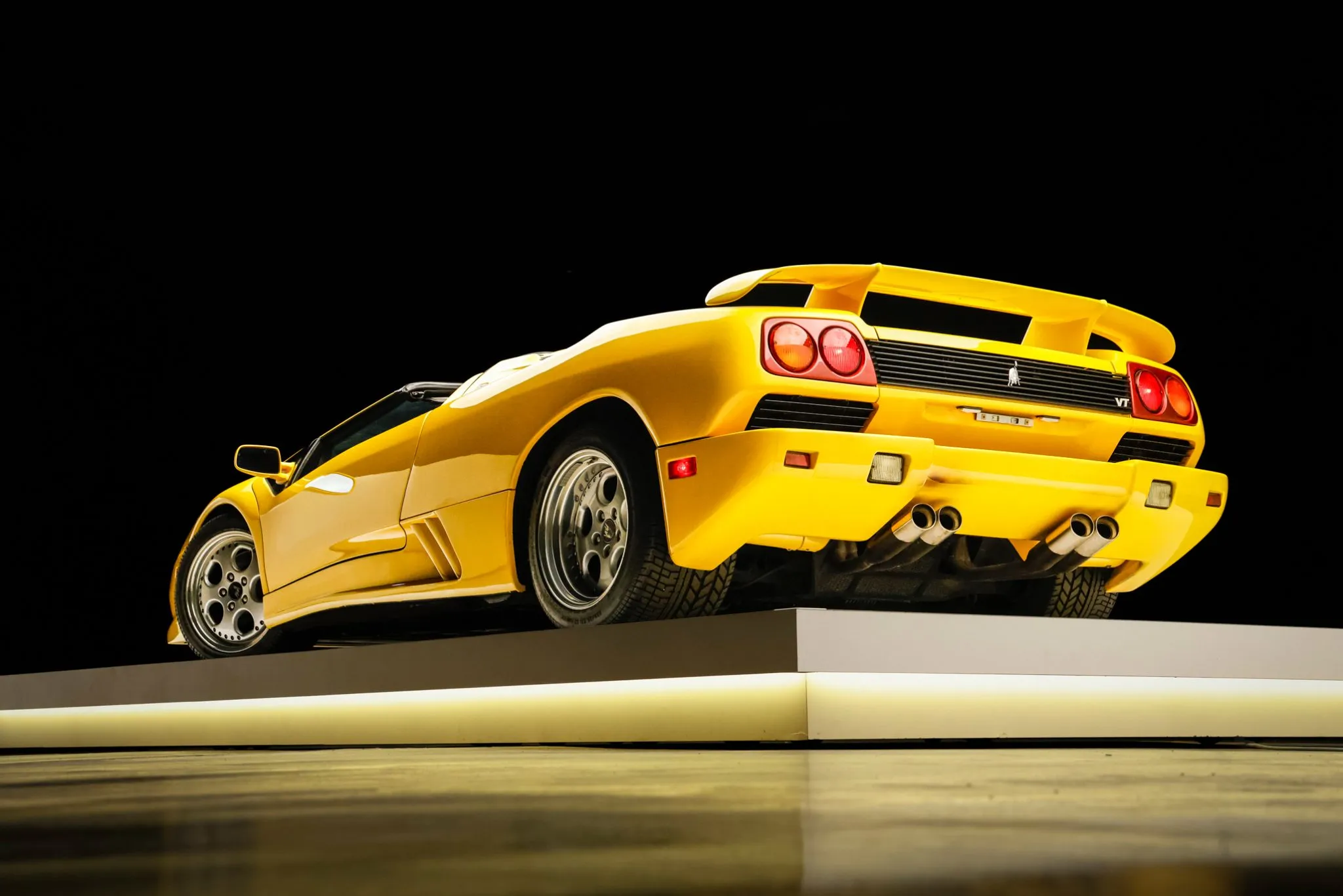The Marcello Gandini-designed Diablo debuted in January 1990 and featured composite and aluminum bodywork. The Diablo was joined by the “viscous traction,” or VT, variant in 1993 as an all-wheel-drive alternative to the standard model. The VT carried over much of its rear-wheel-drive. This example was produced in June 1997 and features a number of upgrades that were introduced for the 1998 model year, including an updated engine cover and bumpers.