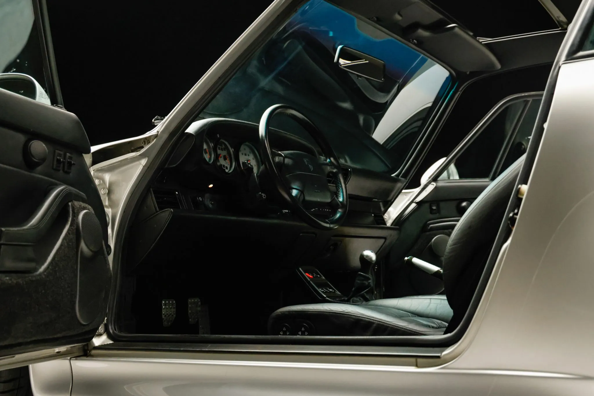 This 1997 Porsche 911 Turbo remained under the care of its previous owner for over two decades, and it now shows 65k miles following registration history in North Carolina and Texas. The car is powered by a twin-turbocharged 3.6L flat-six that drives all four wheels through a six-speed manual transaxle with a limited-slip differential and is finished in Arctic Silver Metallic over black leather upholstery. Features include xenon headlights, fog lights, a fixed rear spoiler, 18″ Turbo Twist wheels, power-adjustable front seats, Nokia Digital Sound Processing, a CD stereo, and air conditioning. This 993 Turbo is offered at no reserve in California by the selling dealer, a BaT Local Partner, with a clean Carfax report and a Texas title.