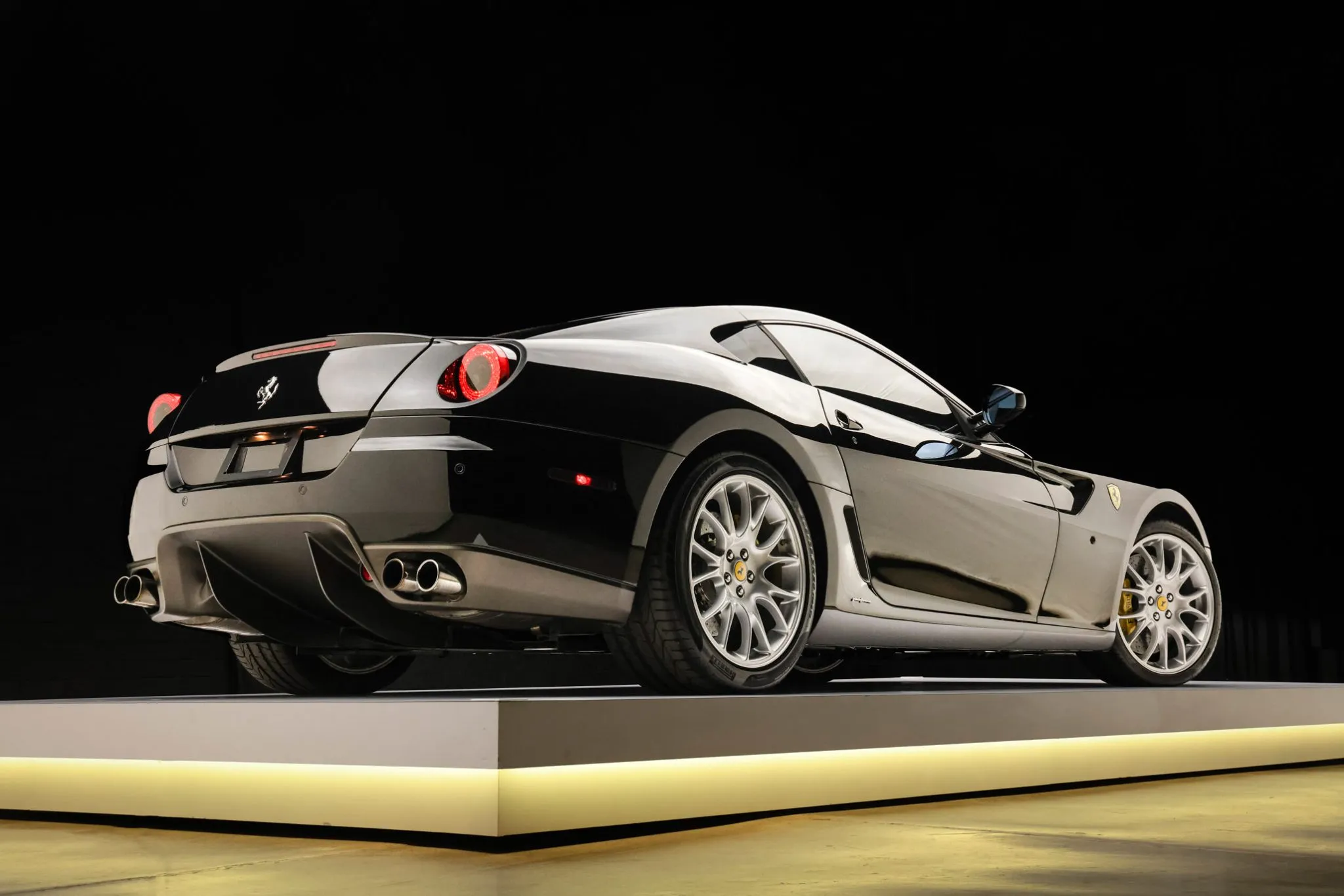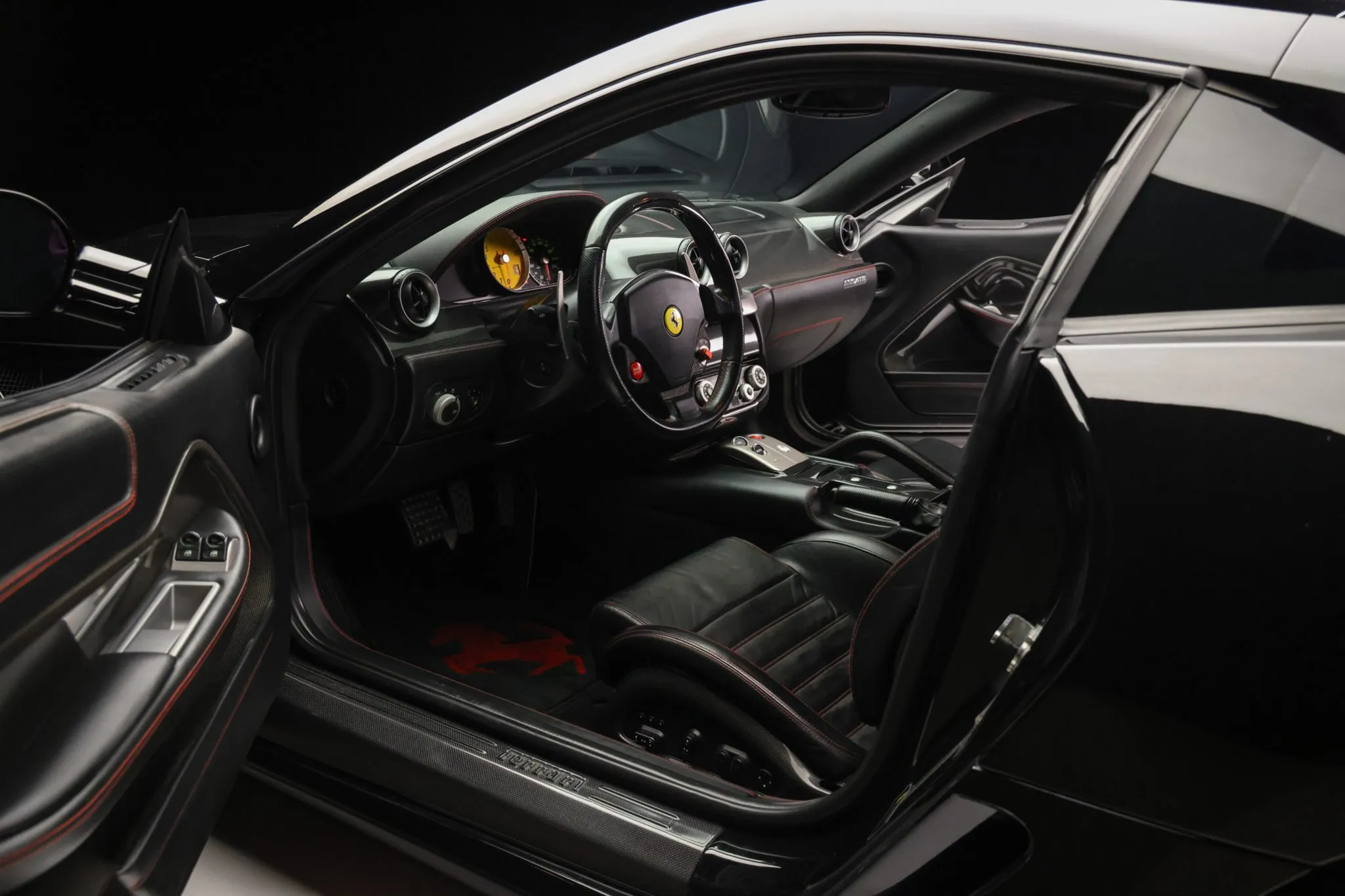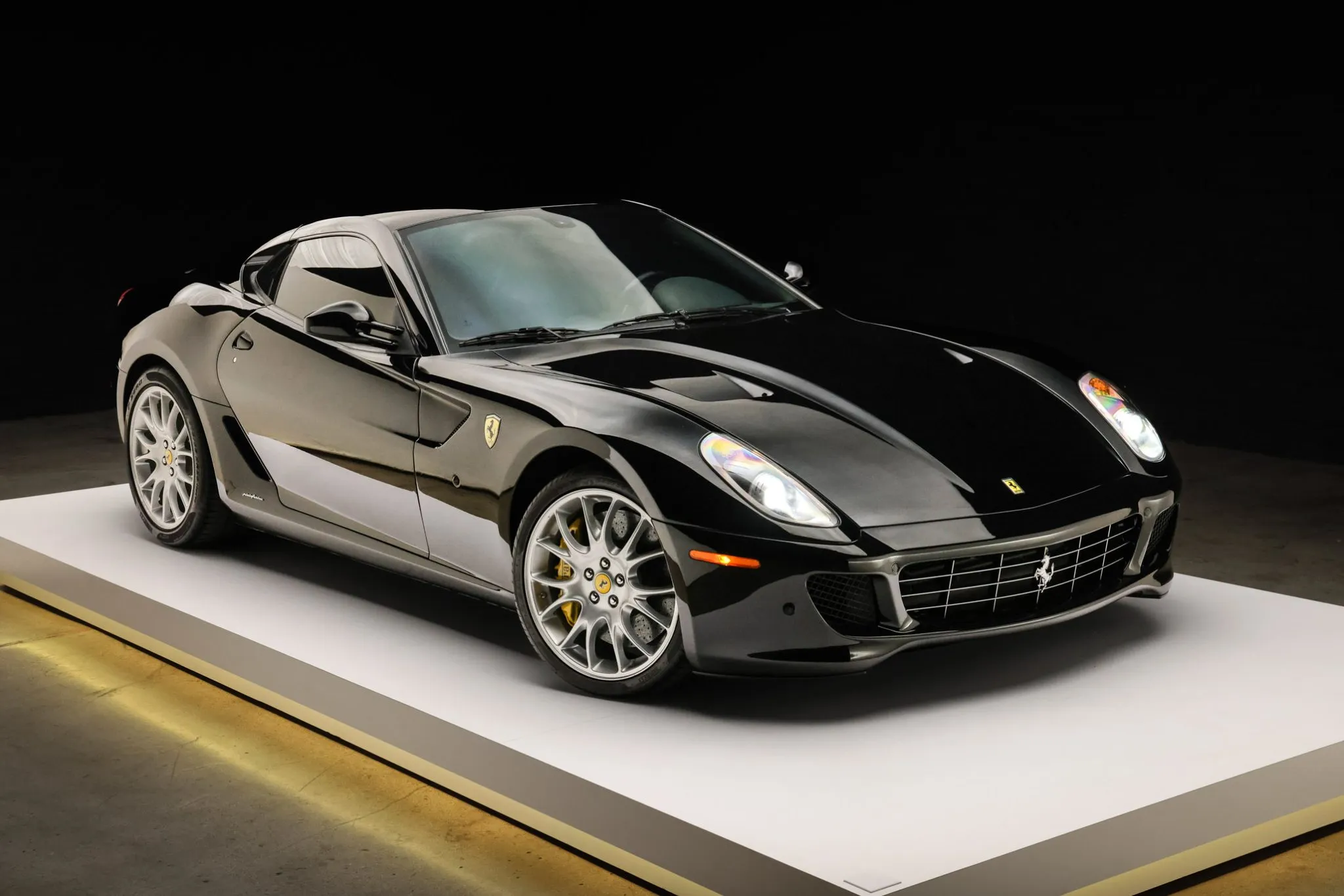This 2007 Ferrari 599 GTB Fiorano is powered by a 6.0-liter F140 V12 paired with a six-speed F1 automated transaxle and is finished in Nero DS 1250 over Nero leather with red stitching. The car has 19k miles following history in California and Nevada, and it was purchased by the current owner in 2022. Equipment includes a limited-slip differential, 20″ Challenge alloy wheels, bi-xenon headlights, Scuderia Ferrari fender shields, parking sensors, a CD stereo, and dual-zone automatic climate control. This 599 GTB Fiorano is now offered in California on consignment by the selling dealer, a BaT Local Partner, with a clean Carfax report and a Montana title.