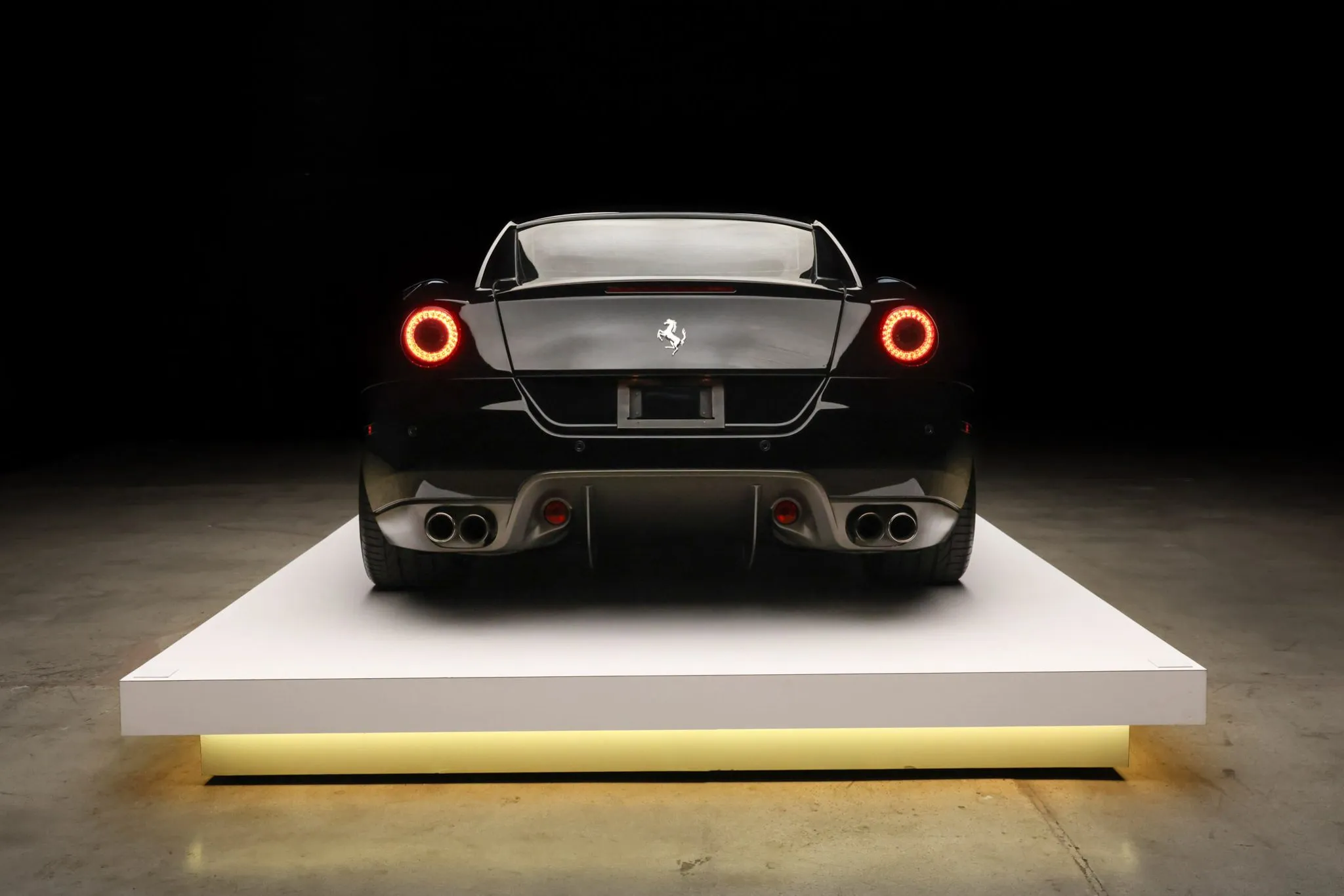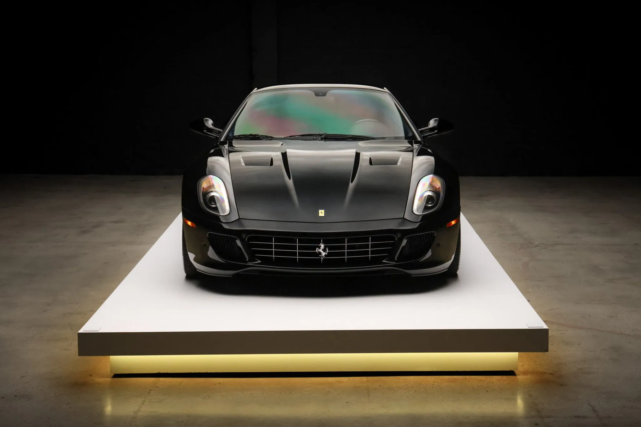 The 599 was designed by Pininfarina under the direction of Jason Castriota and featured Ferrari’s first all-aluminum GT car chassis. This example is finished in Nero DS 1250 and features bi-xenon headlights, side air vents, Scuderia Ferrari fender shields, parking sensors, flying-buttress C-pillars, and quad exhaust outlets. Blemishes around the body are displayed in the gallery below.