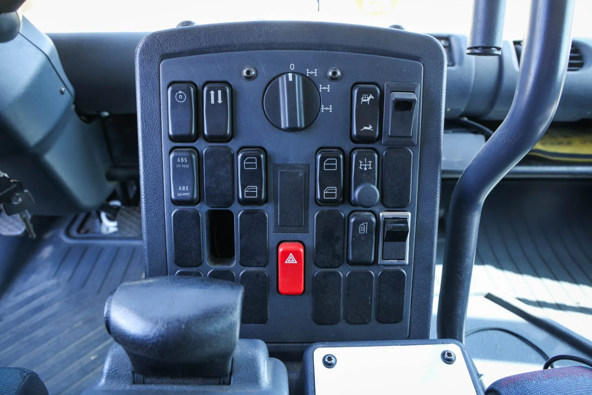 The 6.4-liter turbodiesel inline-six sends power to all four wheels via an automated pre-selector manual transmission, a dual-range transfer case, three locking differentials, and portal axles. The selling dealer notes that the PTO system has been removed.