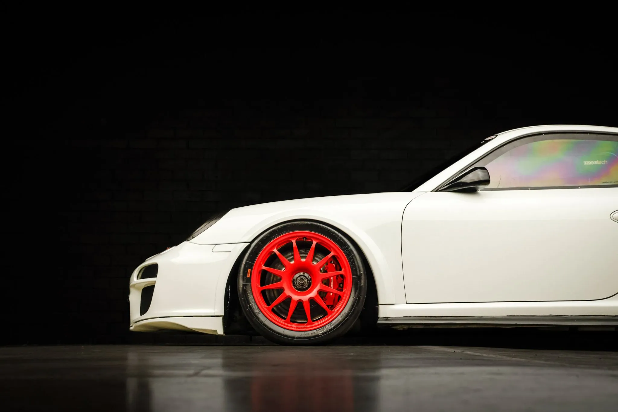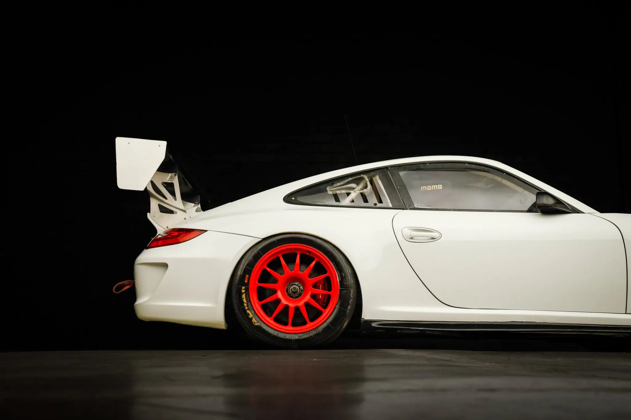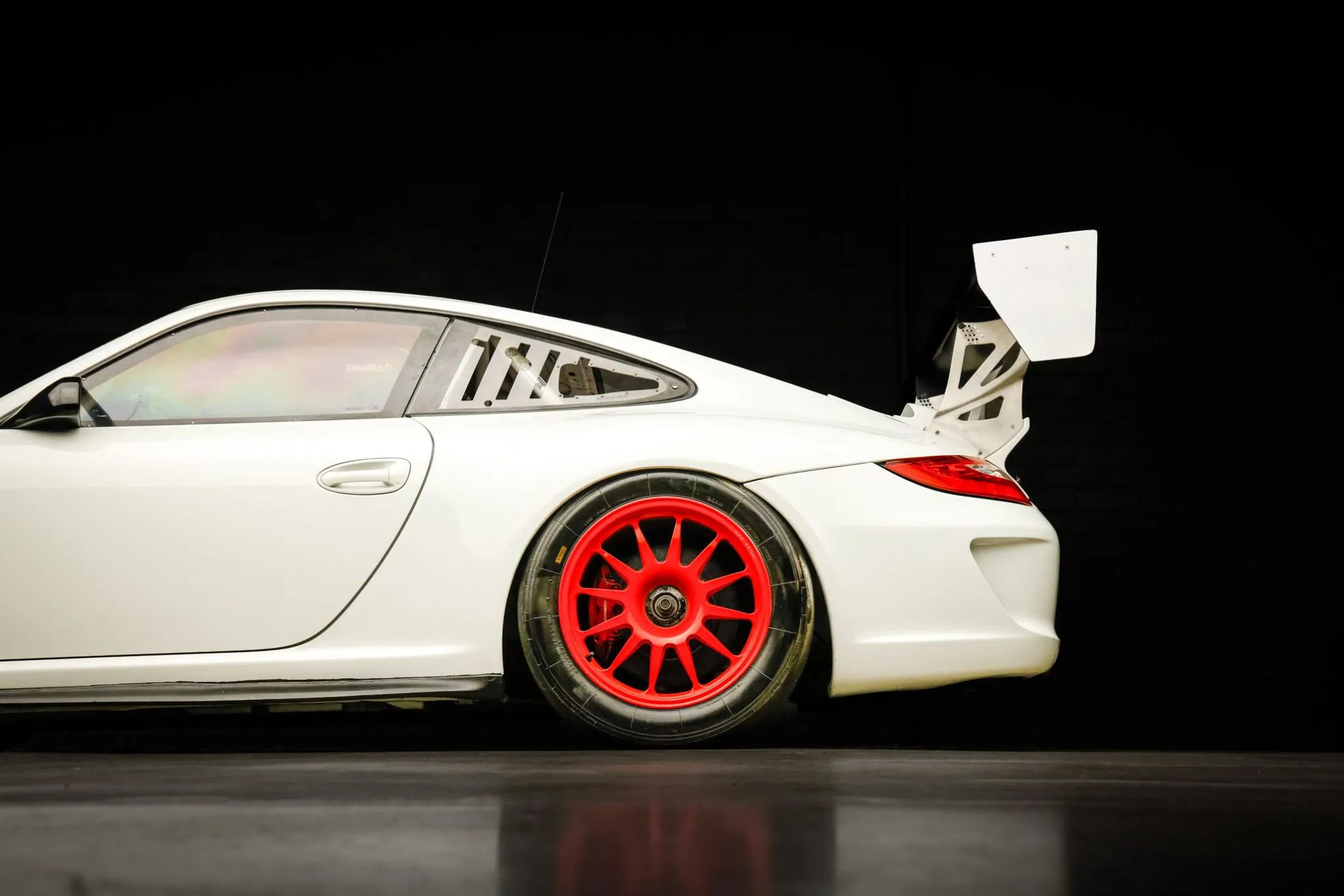 All GT3 Cup cars were finished from the factory in white and fitted with front wheel arch extensions to accommodate a wider front axle as well as widened bodywork and an adjustable rear wing.