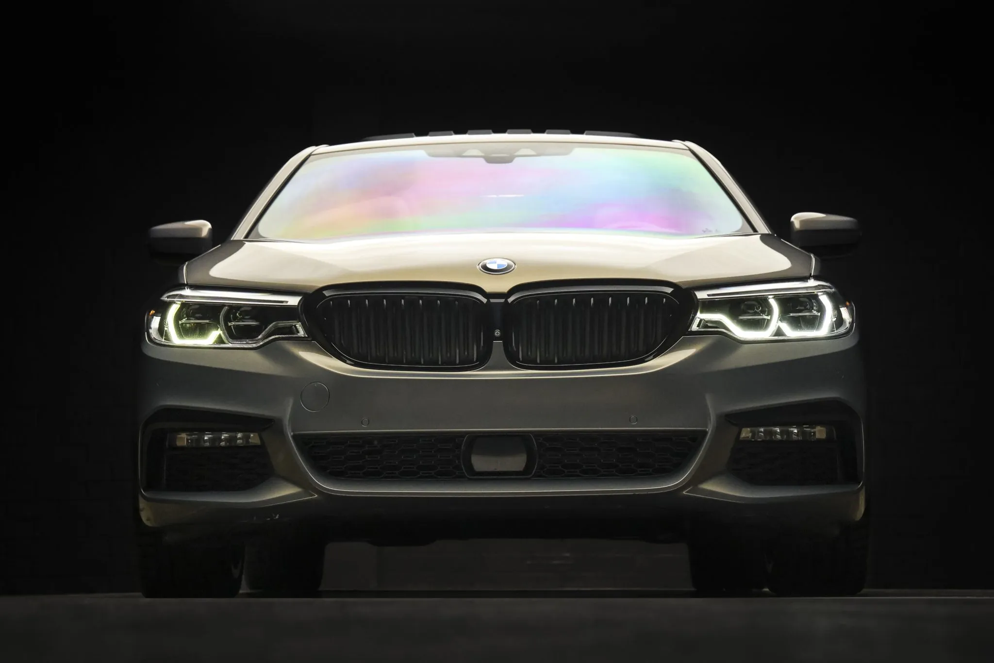 The M Sport Package specified heated power-adjustable front sport seats, a SensaTec-wrapped dashboard, Park Distance Control, Gesture Control, Comfort Access keyless entry, and a powered trunk lid. The seating surfaces are upholstered in Black Dakota leather with contrasting stitching and piping. Additional appointments include wood veneer trim, ambient lighting, automatic climate control, adaptive cruise control, a surround-view camera system, Driving Assistant Plus, Lane Keeping Assist, Parking Assistant Plus, a CD stereo, Harman Kardon audio, and iDrive infotainment with navigation.
