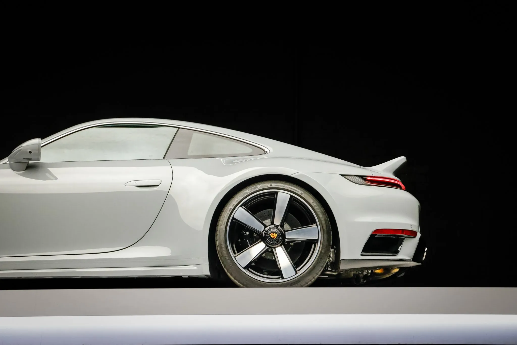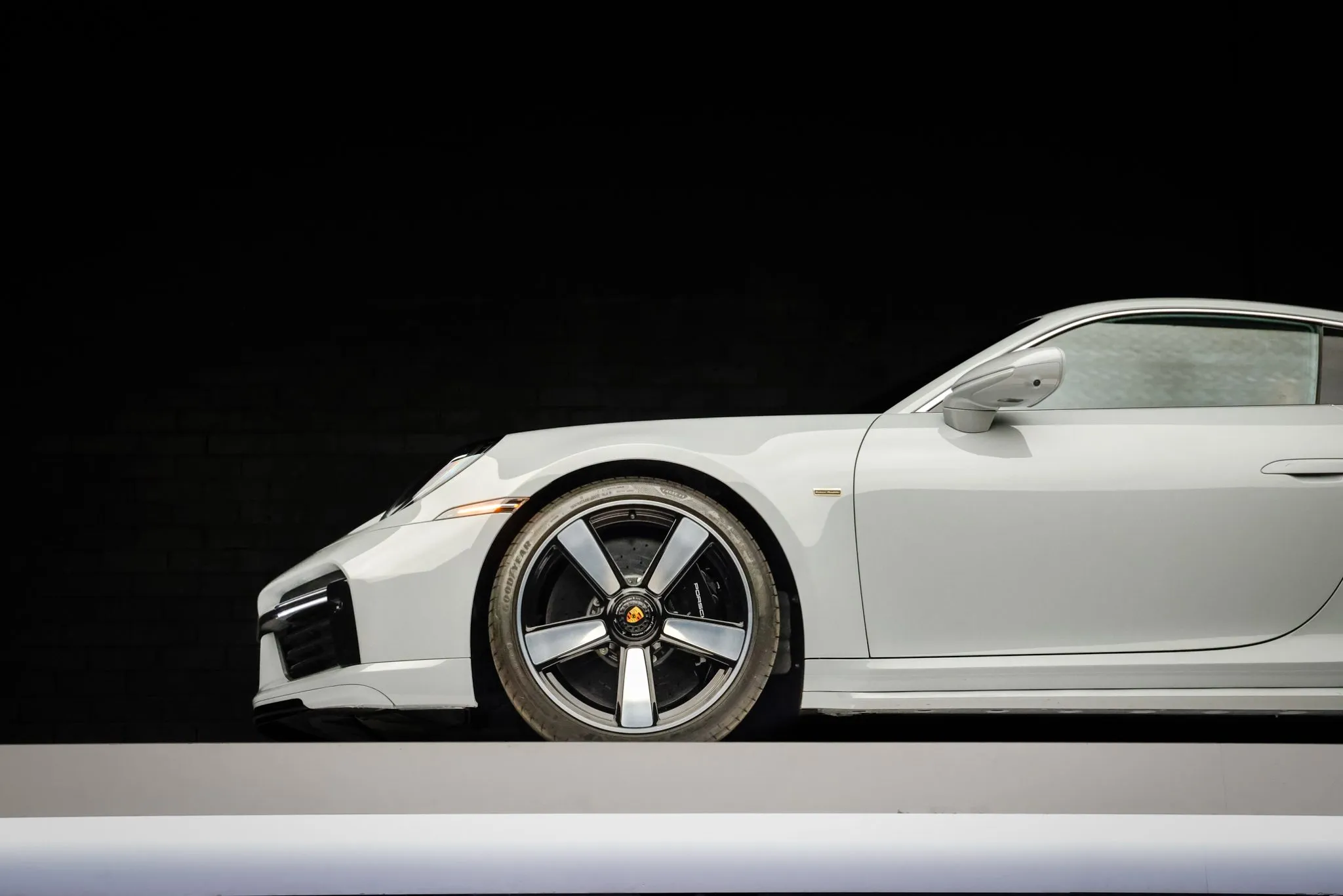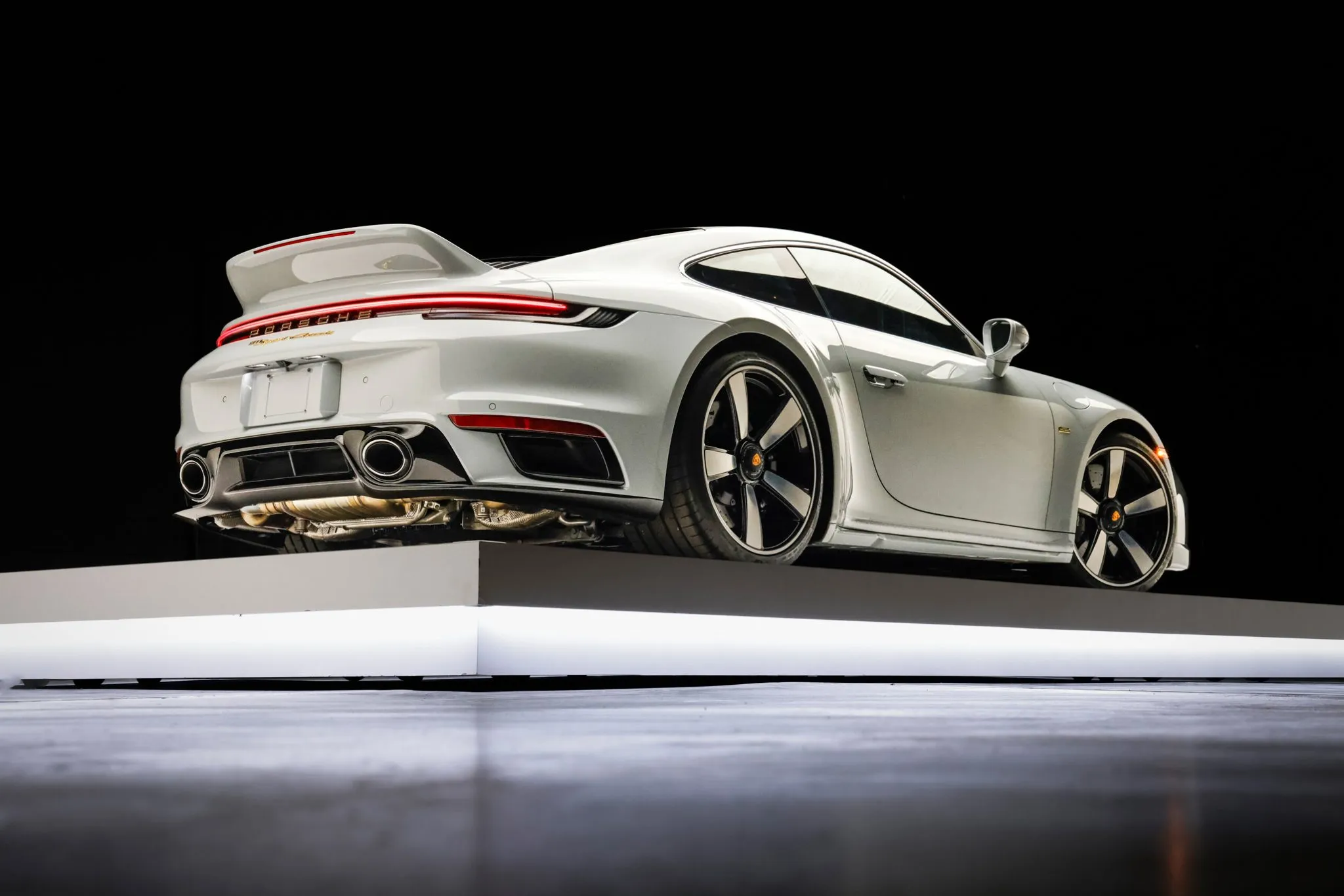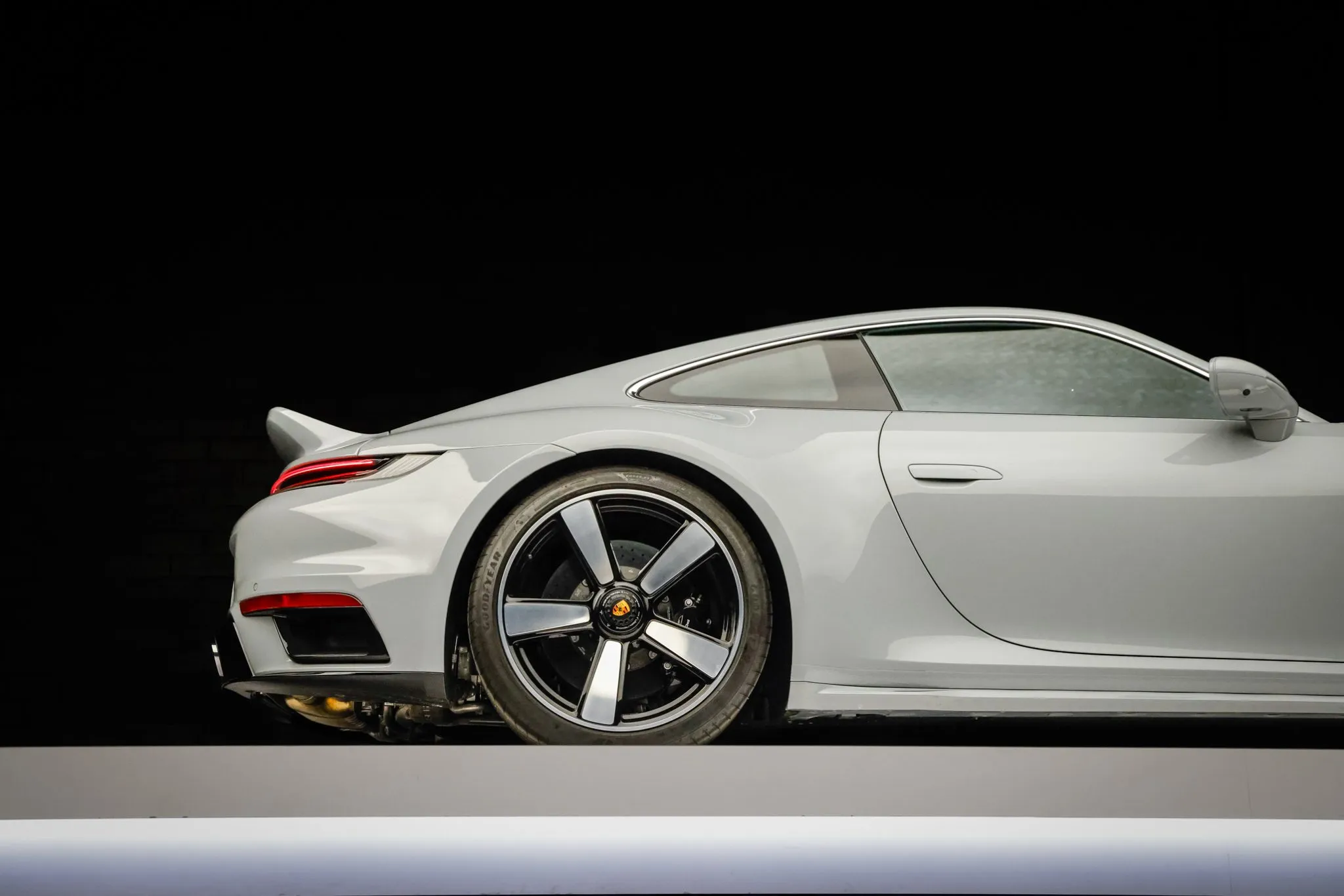 The 911 Sport Classic is based on the 911 Turbo S and pays tribute to the 911 Carrera RS 2.7 from the 1970s with its distinctive ducktail spoiler as well as retro design elements including Fuchs-style alloy wheels and gold badging. This example is finished in Sport Classic Gray Metallic with over-the-top stripes and features a carbon-fiber roof with a double-bubble as well as LED-Matrix Design headlights and a Porsche Heritage rear grille badge.