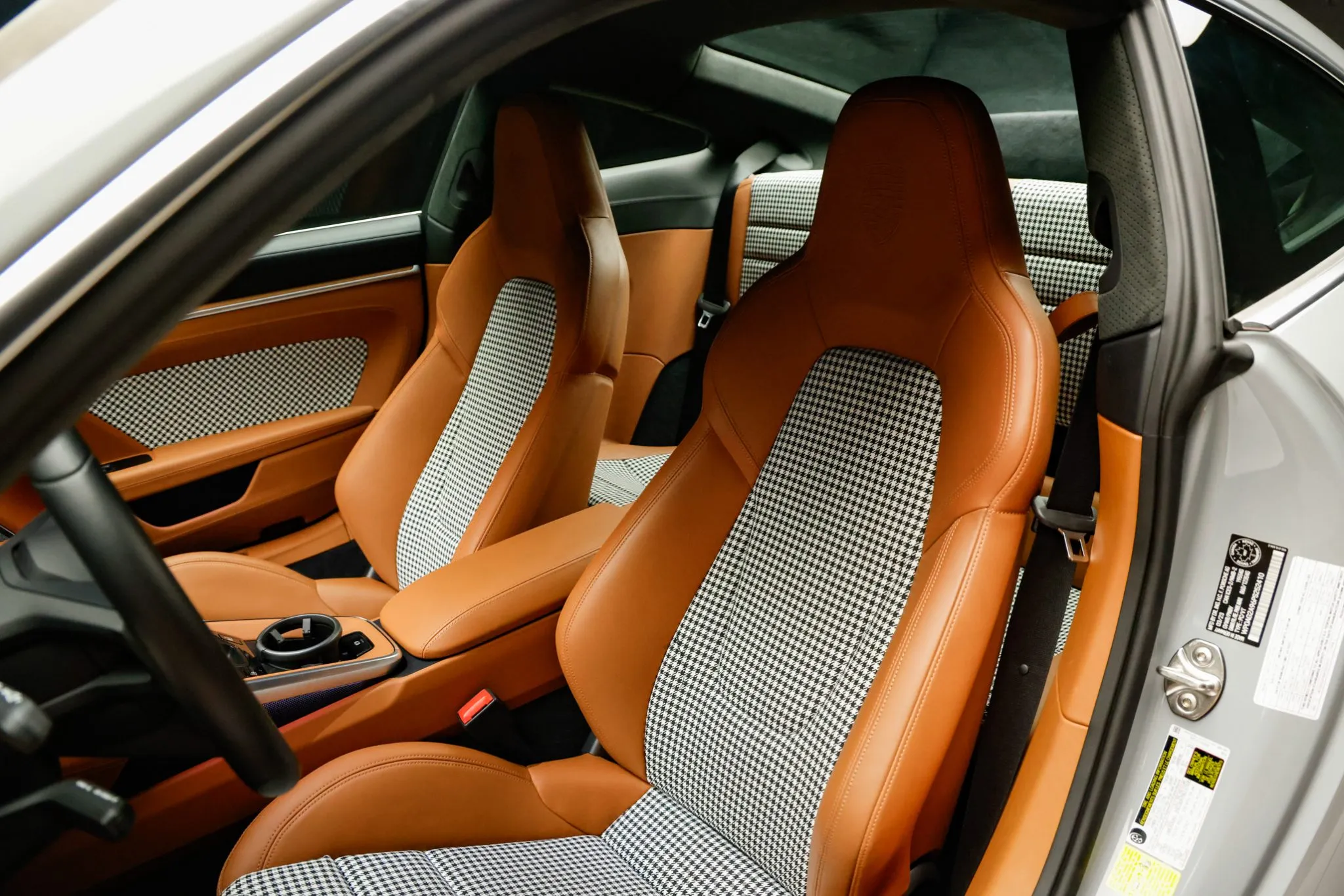 This 2023 Porsche is #1,132 of 1,250 911 Sport Classic examples produced worldwide, all of which link a Turbo-specification twin-turbocharged 3.7L flat-six with a seven-speed manual transaxle and rear-wheel drive. This example was produced for the Canadian market and was brought to the US in the fall of 2024. Finished in Sport Classic Gray Metallic over Classic Cognac Semi-Aniline Heritage leather with Pepita inserts, the coupe is equipped with Porsche Ceramic Composite Brakes, a Sport exhaust, heated front Sport seats, a Burmester sound system, LED-Matrix Design headlights, and 20″ and 21″ Sport Classic wheels. Recently acquired by the selling dealer, a BaT Local Partner, this 992.1 Sport Classic has 2,100 miles and is now offered in California with a clean US Carfax report and an Iowa title.