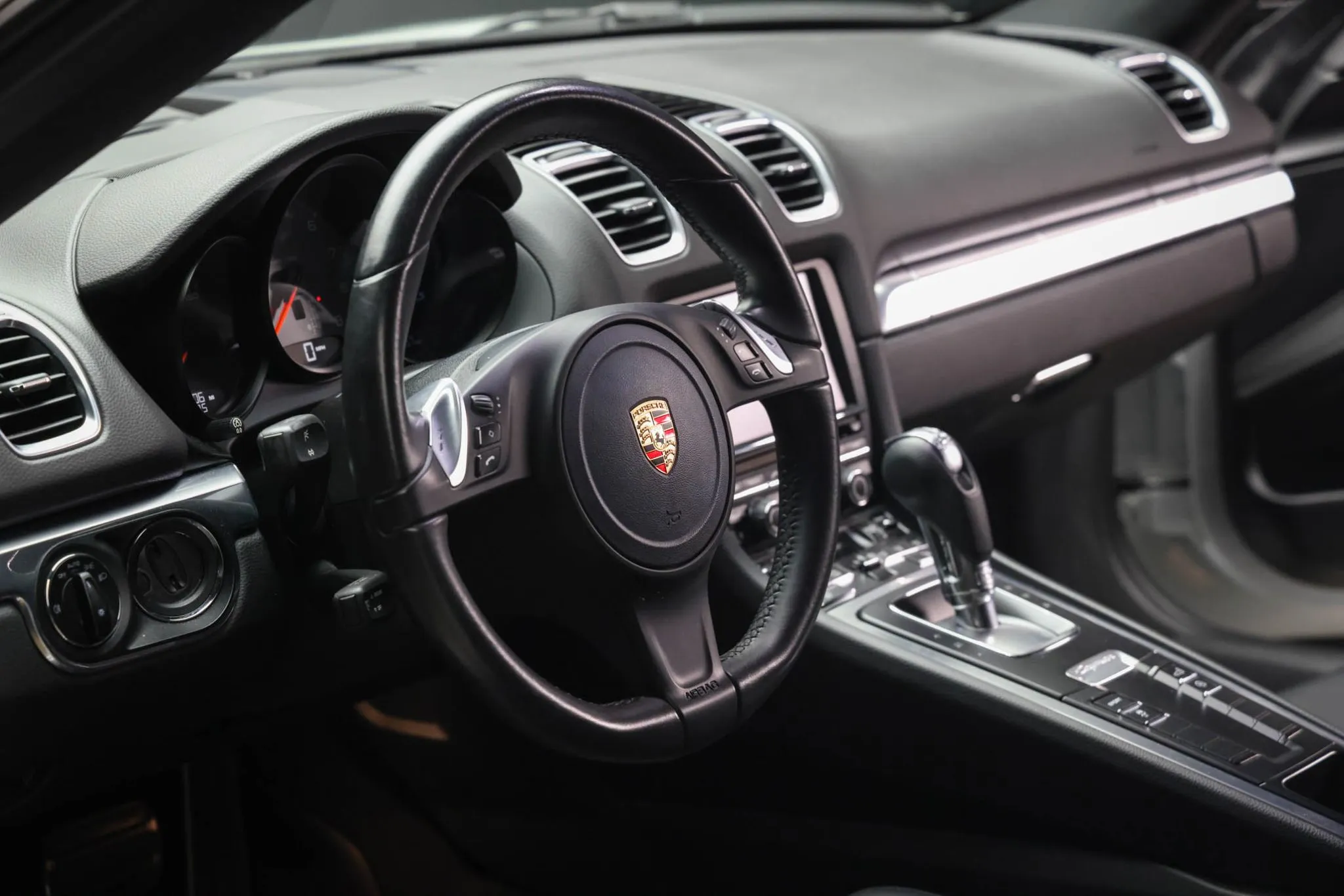 This 2014 Porsche Cayman S has 27k miles following registration history in California, New Mexico, Texas, and Virginia. It is finished in white over black leather and is powered by a 3.4-liter flat-six paired with a seven-speed PDK dual-clutch automatic transaxle. Equipment includes 20″ Carrera S alloy wheels, Power Steering Plus, bi-xenon headlights with PDLS, a speed-activated rear spoiler, front and rear ParkAssist, heated power-adjustable sport seats, dual-zone automatic climate control, a CD stereo, and a Bose Surround Sound system. This 981 Cayman S is now offered on dealer consignment with the owner’s manual, a car cover, a clean Carfax report, and a clean California title.