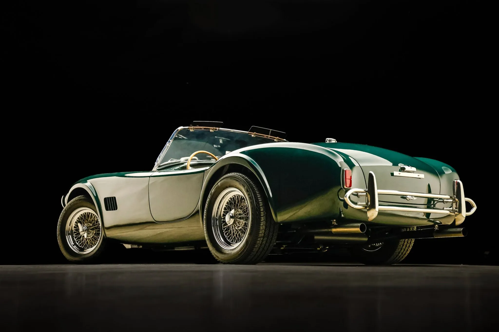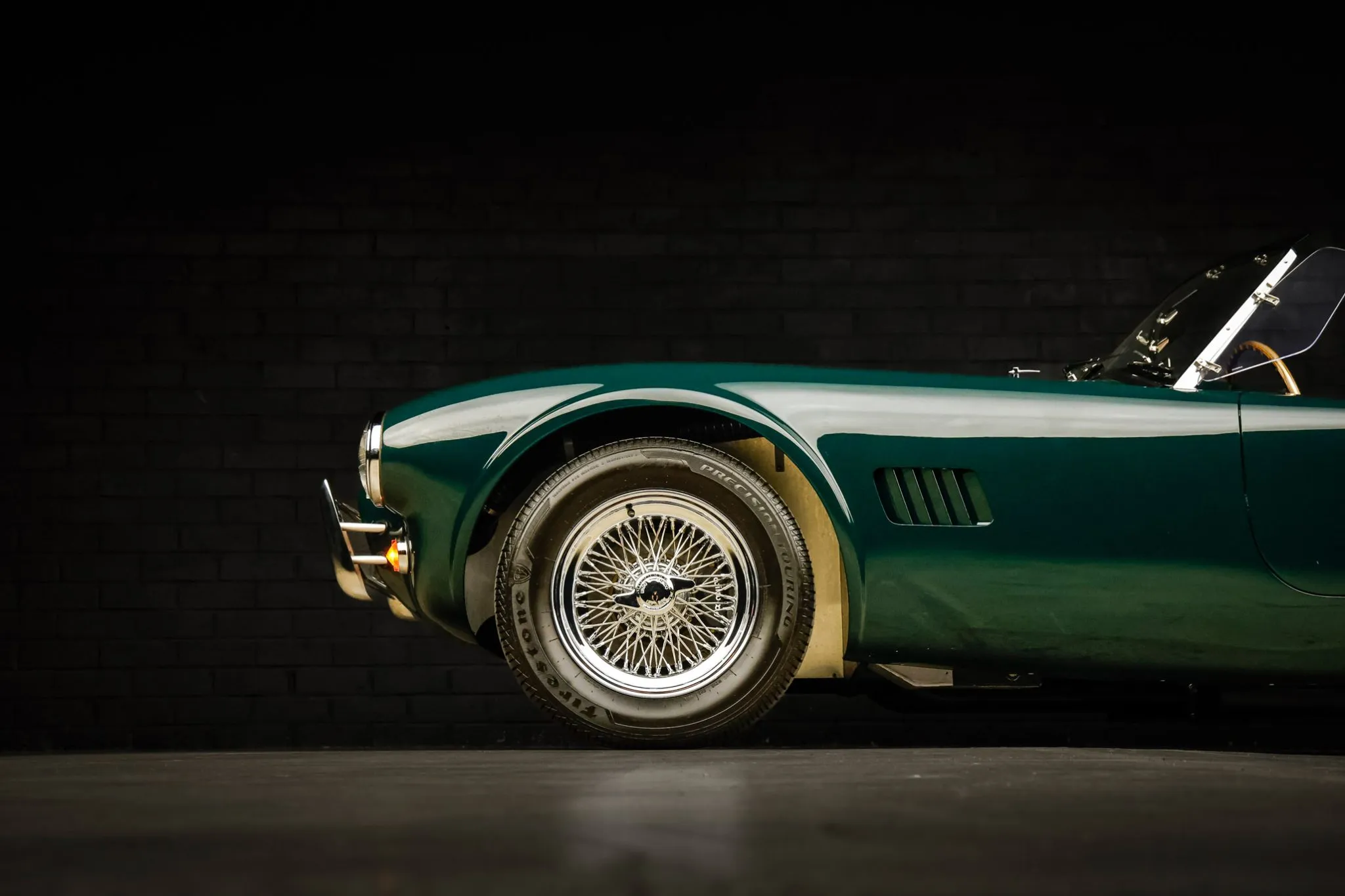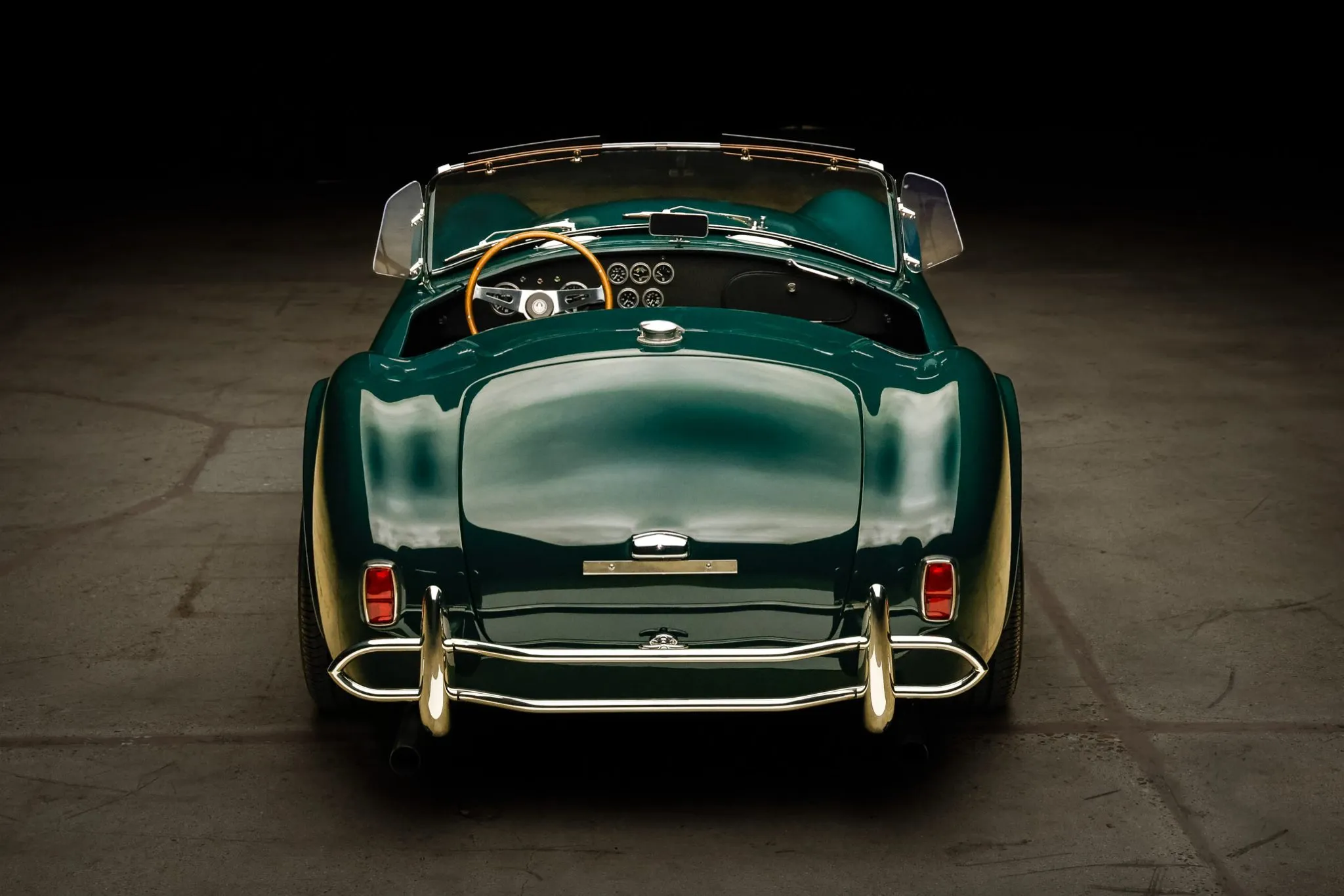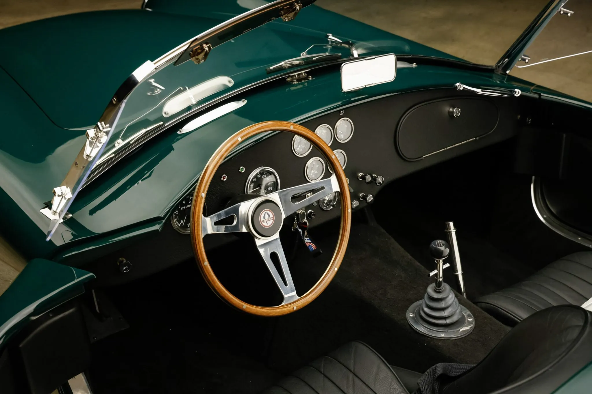 This Superformance MKII is a slab-side Cobra replica that is powered by a 302ci Ford V8 linked with a Tremec TKO 600 five-speed manual transmission and a ZF limited-slip IRS differential. Finished in British Racing Green over black leather upholstery, the car is equipped with chrome 15″ knock-off wire wheels, Wilwood disc brakes, a wood-rimmed Moto-Lita steering wheel, Stewart Warner instrumentation, an AutoMeter analog clock, MSD ignition components, ceramic-coated long tube exhaust headers, and an aluminum radiator. Acquired by the seller in 2024, this MKII Cobra replica is now offered on dealer consignment by a Local Partner with a duplicate MSO and a clean California title describing the car as a Specially Constructed Vehicle.