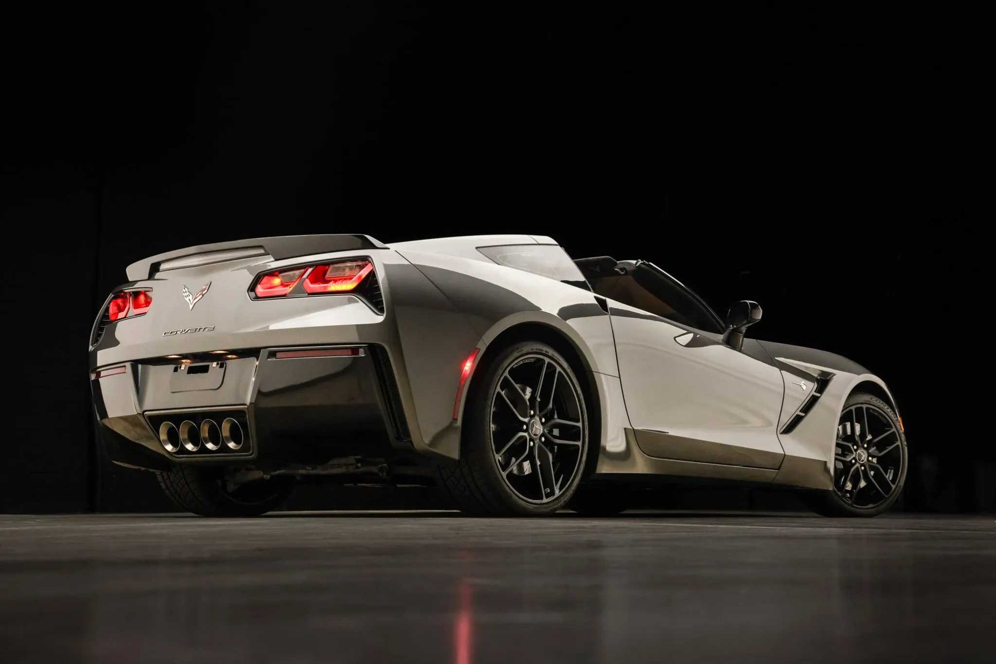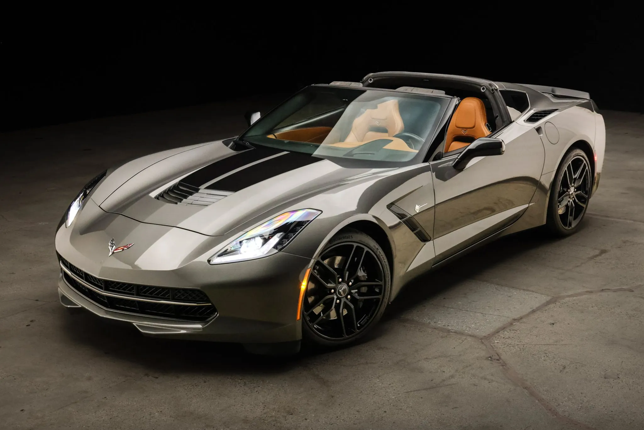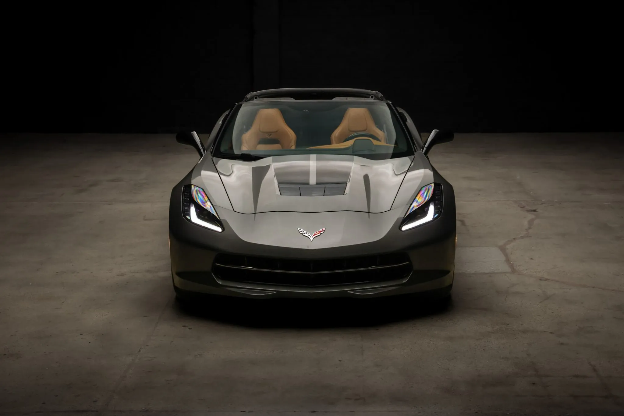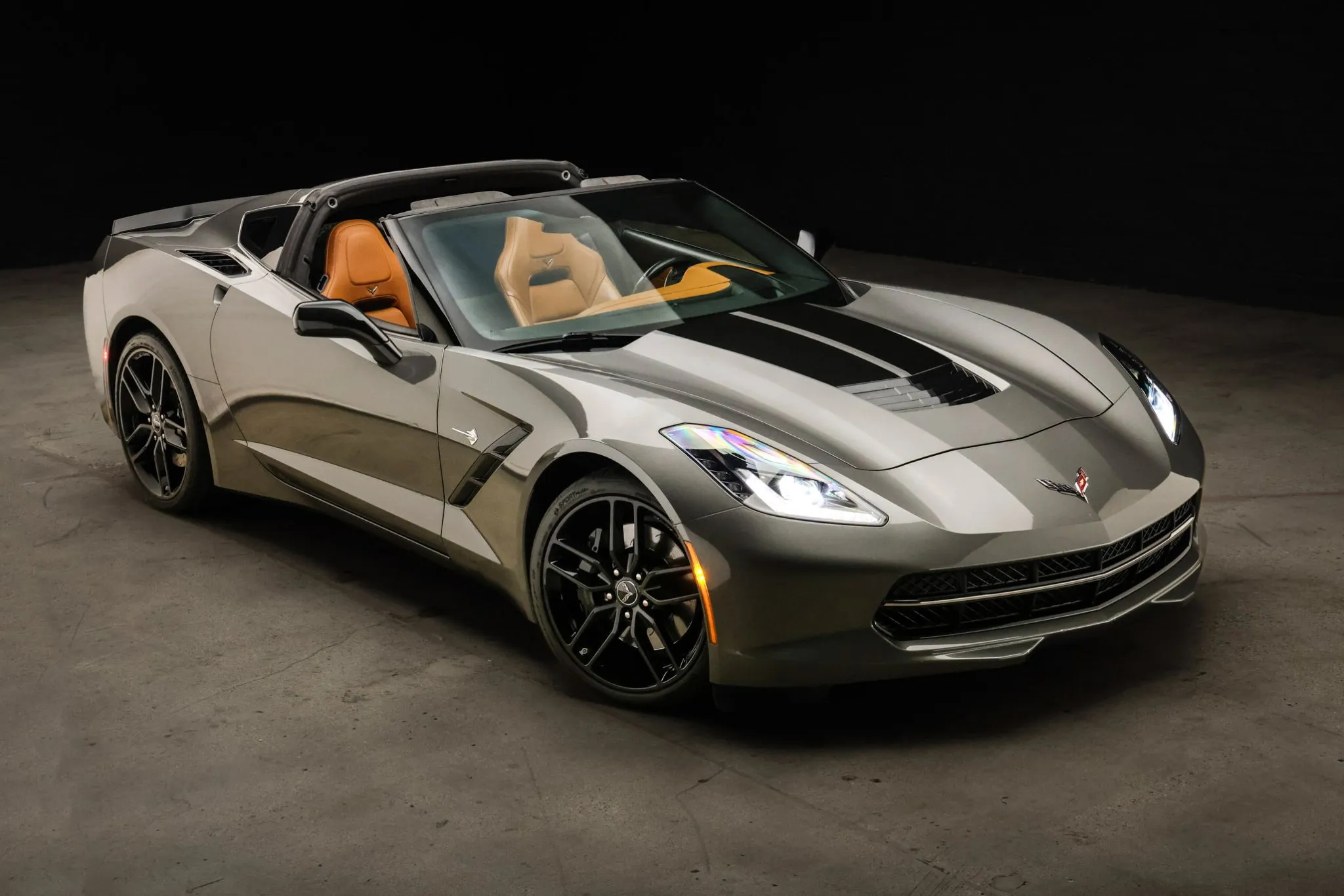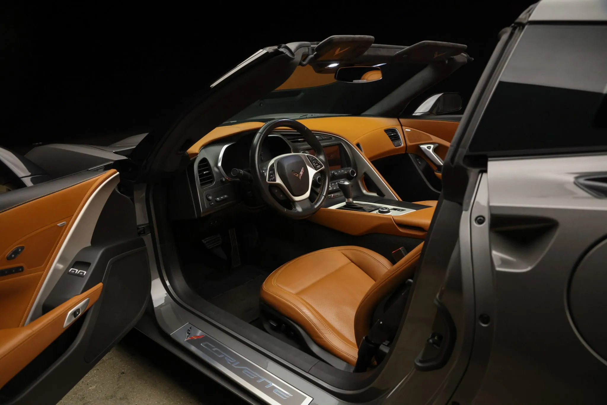 This 2015 Chevrolet Corvette Stingray coupe was specified in Shark Gray over Kalahari leather, and it was optioned with the Z51 Performance Package and the 3LT Preferred Equipment Group. Now with 30k miles, it is powered by a 6.2-liter LT1 V8 linked with an eight-speed automatic gearbox and a limited-slip differential. Equipment includes 19″ and 20″ alloy wheels, xenon headlights, a removable roof panel, a rear spoiler, heated and ventilated bucket seats, a Performance Data and Video Recorder, a head-up display, a Bose sound system, and MyLink infotainment. Acquired by the selling dealer, a BaT Local Partner, in 2026, this C7 Stingray is now offered in California with a car cover, an owner’s manual, a clean Carfax report, and a clean Florida title.