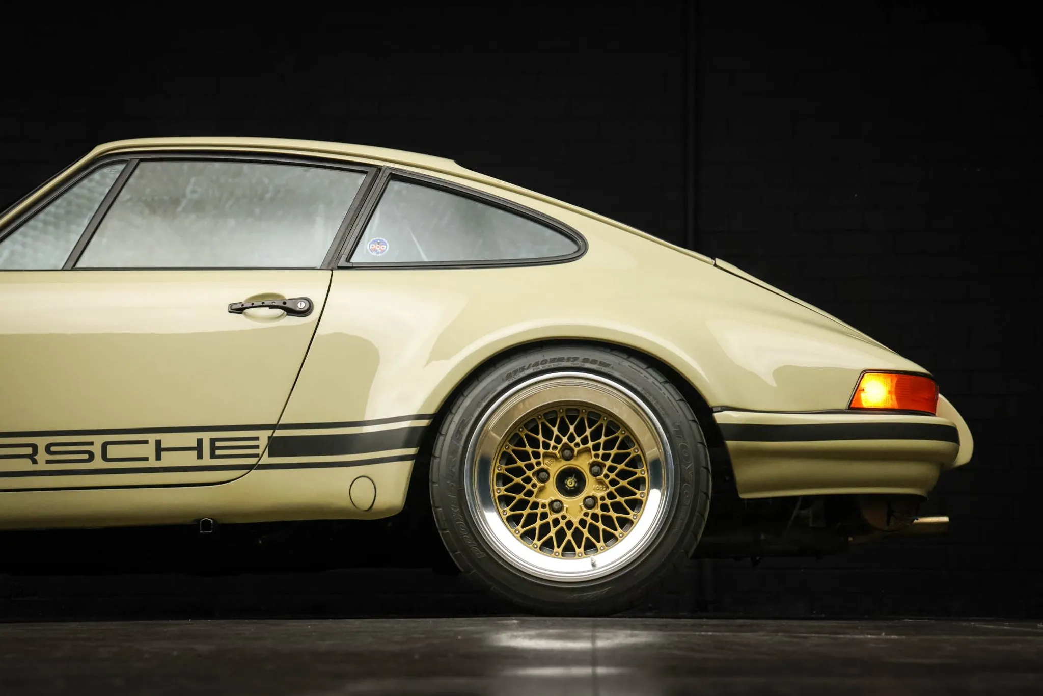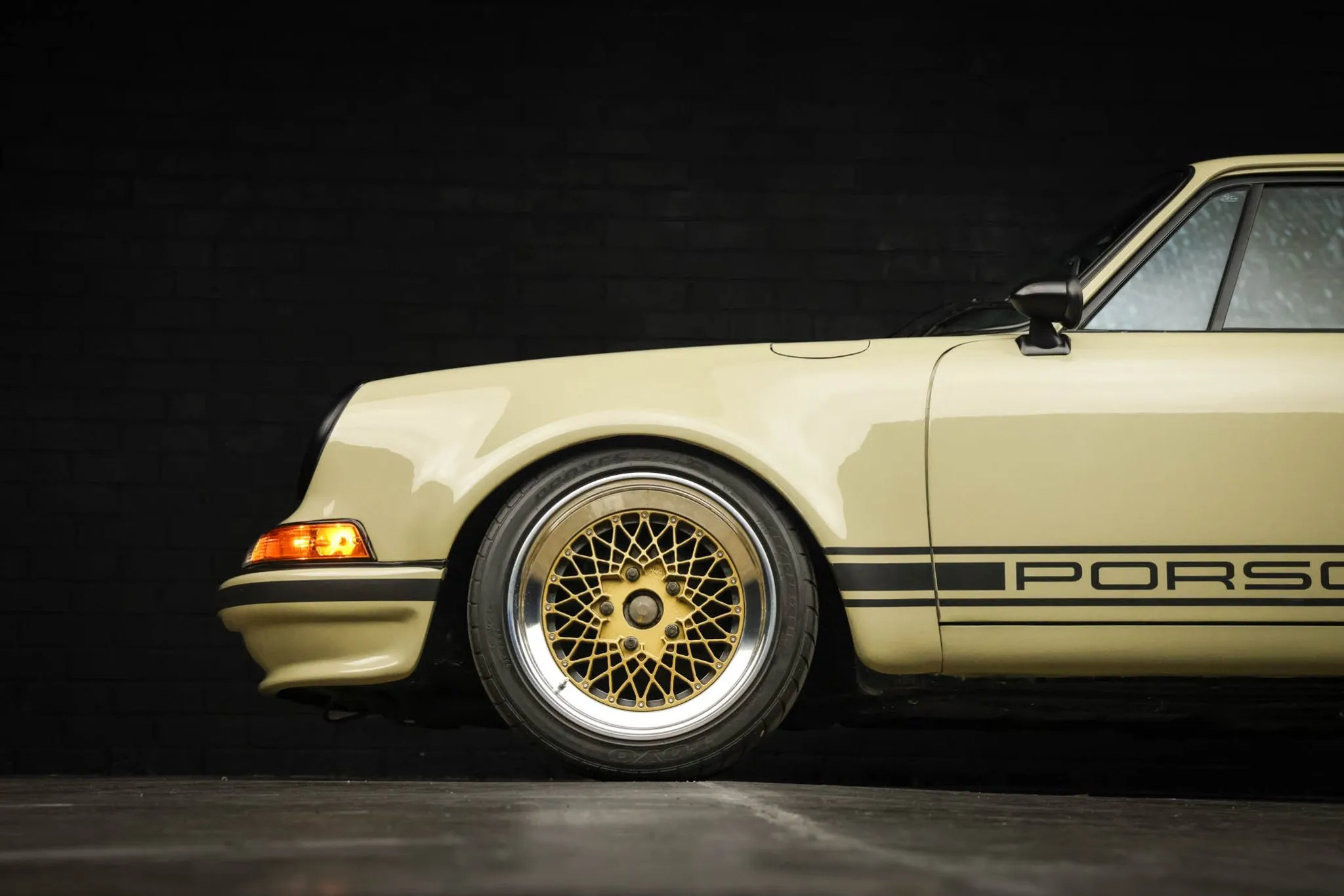 This 1979 Porsche 911SC coupe was modified under previous ownership with backdated bodywork, 930-style fender flares, and a rebuilt 3.2-liter flat-six fitted with 98mm Mahle pistons and cylinders, 964-specification camshafts, Patrick Motorsports 46mm PMO carburetors, a Fidanza aluminum flywheel, stainless-steel SSI headers, and a GT3-style muffler. Finished in Stone Grey over black leather, the car also has a close-ratio Type 915 five-speed transaxle, 17″ BBS E50 wheels, Bilstein HD rear shocks, Turbo-specification tie rods, Rennline interior elements, air conditioning, a Midland GMRS radio, a Porsche Classic stereo head unit, and heated Recaro Sportster CS seats. This 911SC coupe was sold on BaT in November 2023 before it was acquired by the current owner, and it is now offered on dealer consignment in California with a Minnesota title.