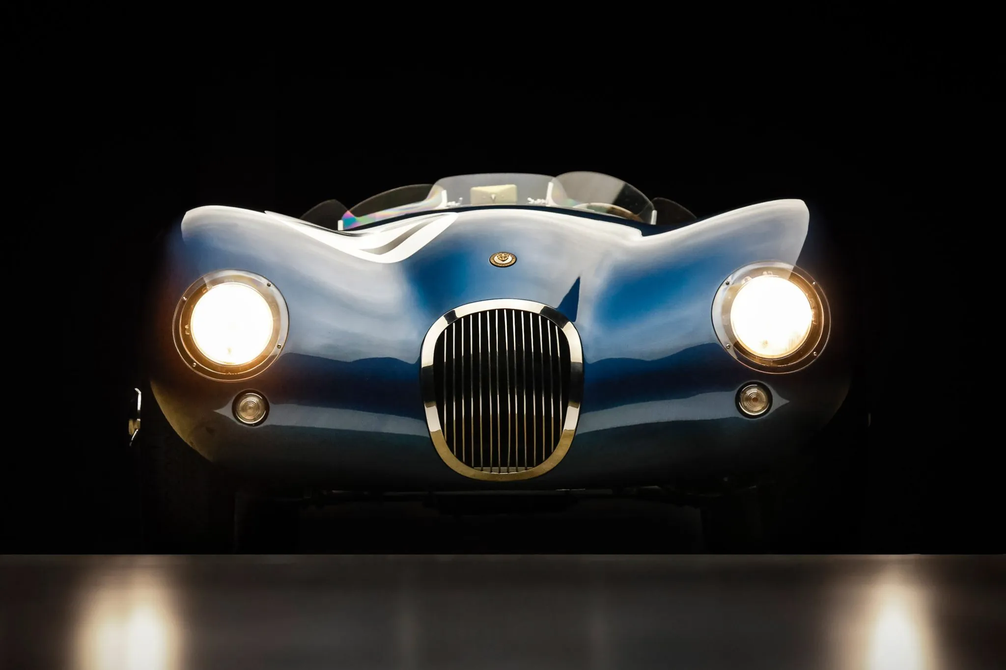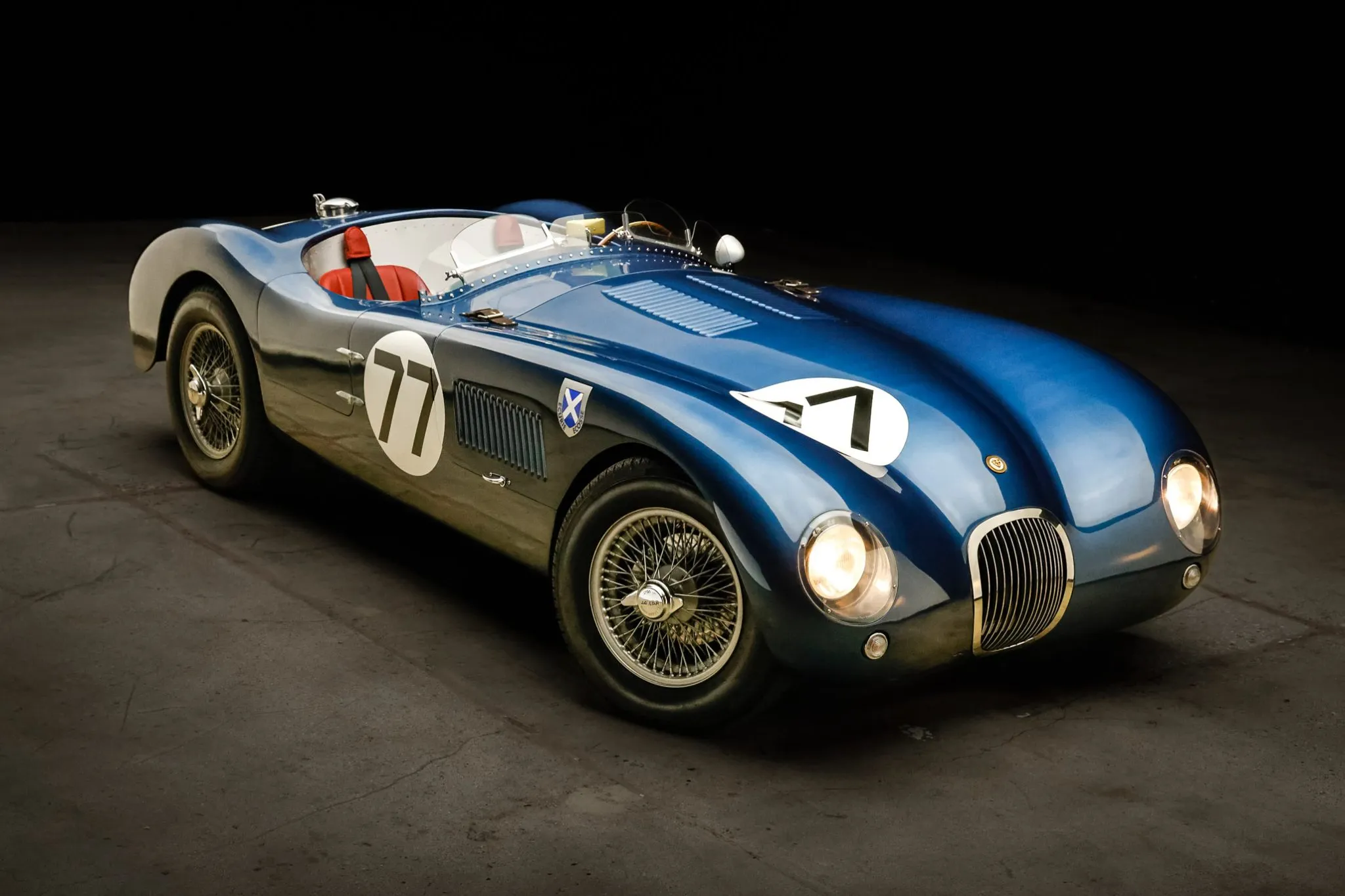 The C-Type was developed as a competition variant of the XK120C and featured an aluminum body over a tubular frame. Approximately 50 examples were built, among them the 1951 and 1953 24 Hours of Le Mans winners.