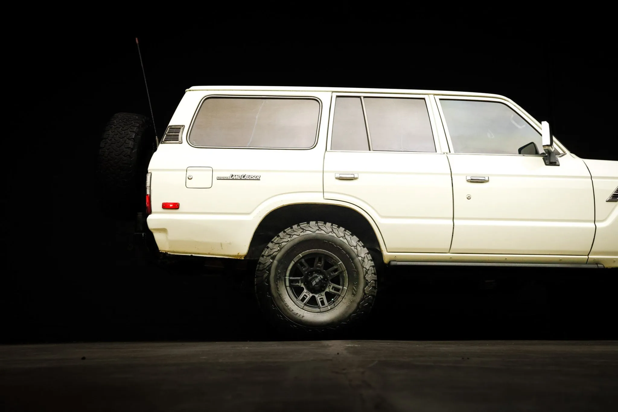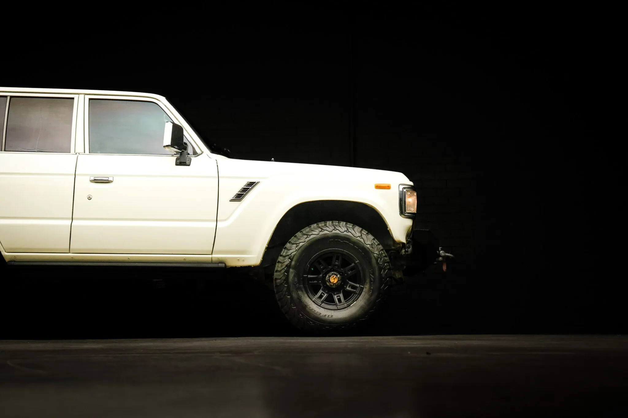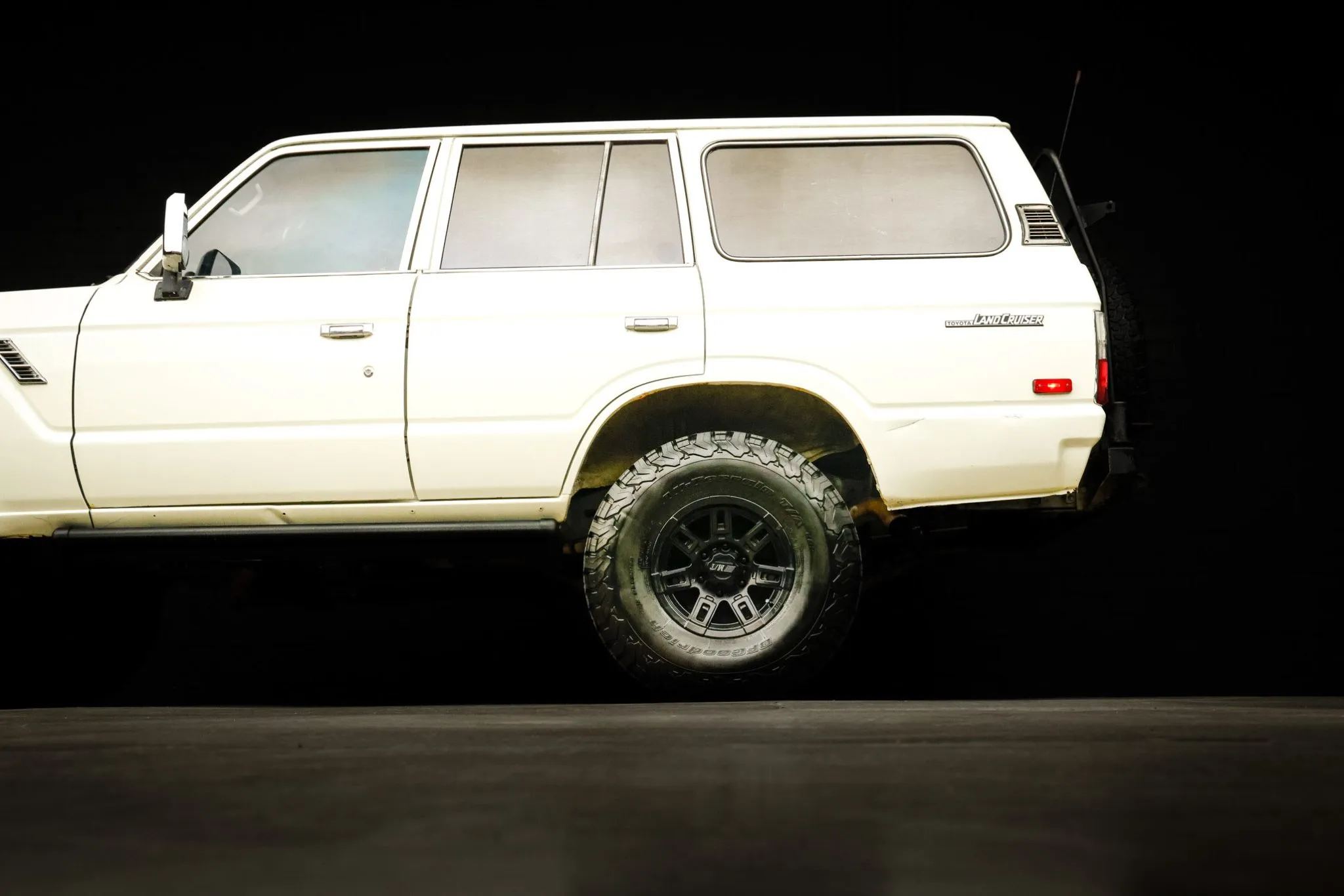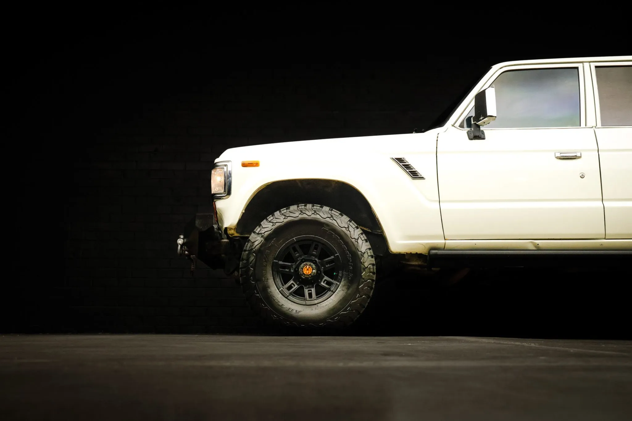 Old Man Emu provided the 2.5″ suspension lift, and Aisin manually locking hubs are found up front. Black-finished Mickey Thompson 15″ wheels are mounted with 33×10.5″ BFGoodrich All-Terrain T/A KO2 tires, and a matching spare is found out back.