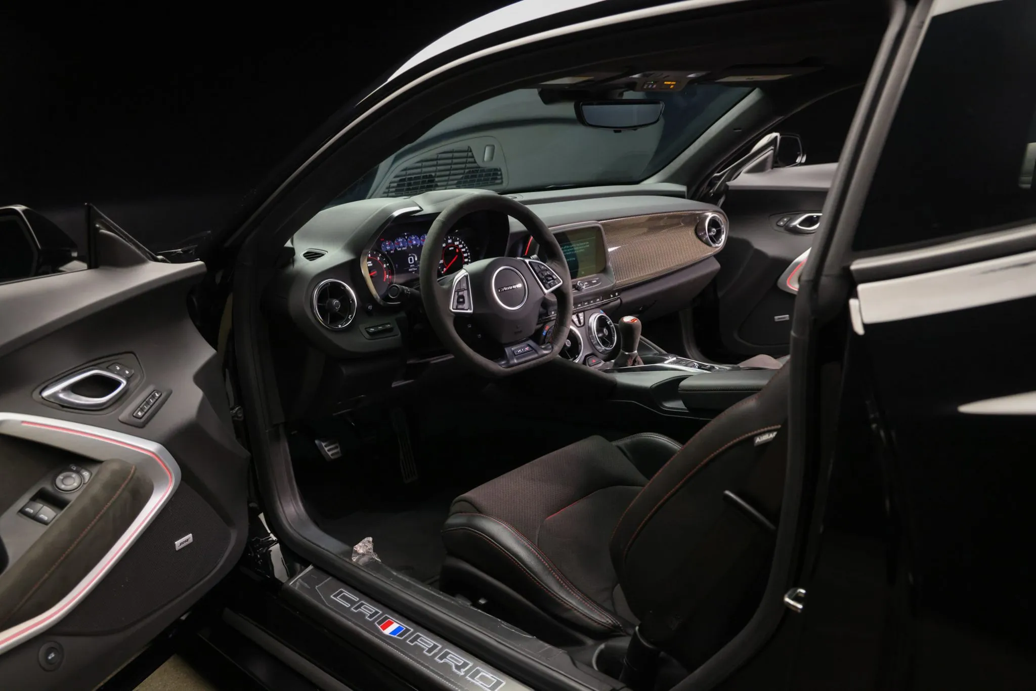 The heated and ventilated Recaro front seats are trimmed in Jet Black leather with sueded microfiber inserts along with red accents and stitching. The door panels have matching upholstery, while optional carbon-fiber trim adorns the dashboard. A Performance Data and Video Recorder was also ordered, and further interior amenities include a Bose sound system, a power-adjustable driver’s seat, keyless entry, dual-zone automatic climate control, wireless charging, driver-seat position memory settings, and a Chevrolet Infotainment 3 Plus system with Apple CarPlay and Android Auto connectivity.