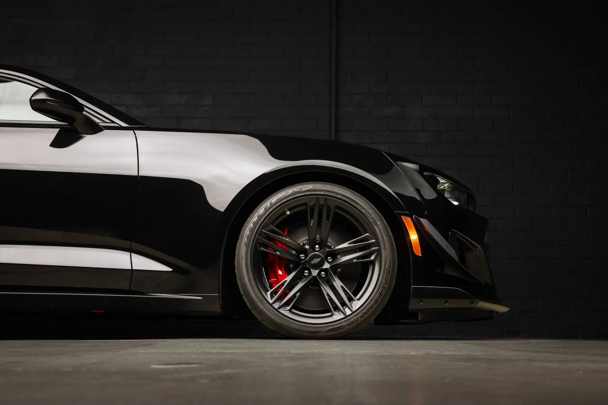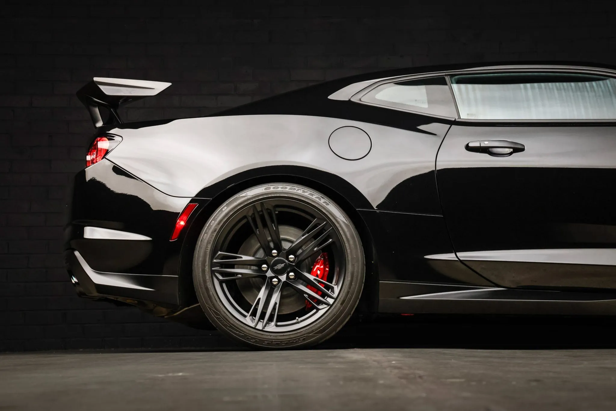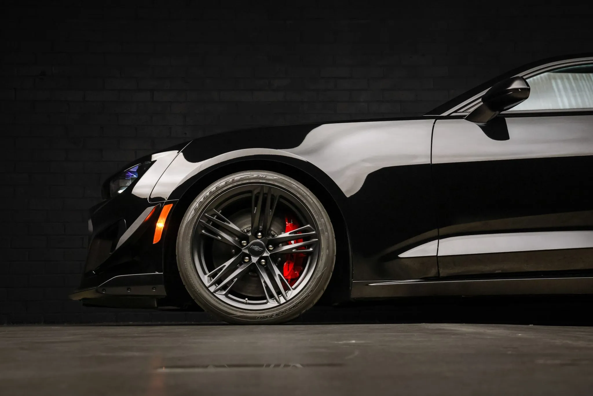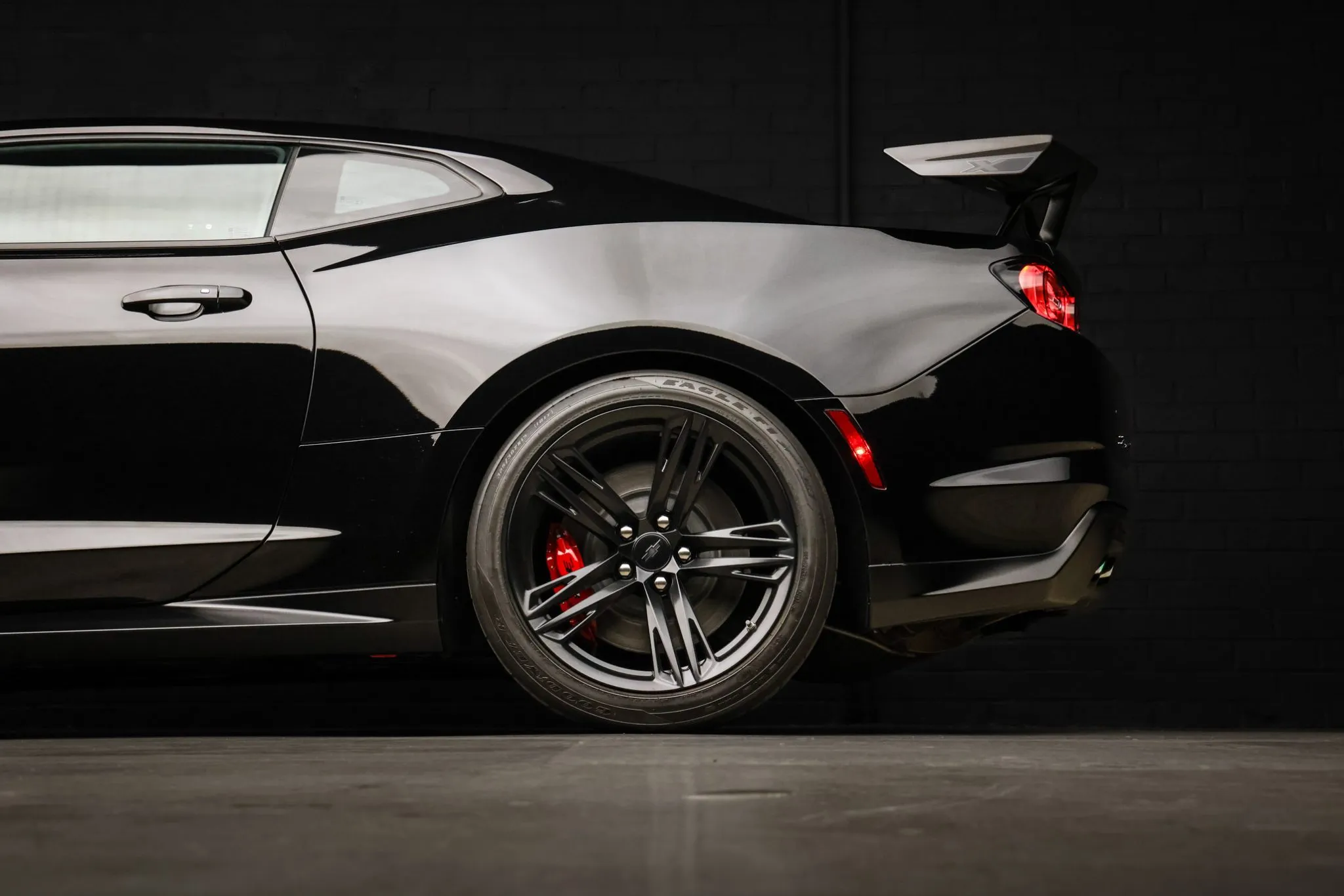 The 1LE Extreme Track Performance Package added a performance suspension with Multimatic Dynamic Suspension Spool Valve dampers, a three-way adjustable rear stabilizer bar, and black-painted 19″ forged aluminum wheels, the latter of which are mounted with 305/30 front and 325/30 rear Goodyear Eagle F1 Supercar 3R tires that show date codes from 2021 and 2023. Stopping power is provided by red-finished six-piston front and four-piston rear Brembo calipers fitted over ventilated front and performance rear discs. The brake fluid was recently flushed.