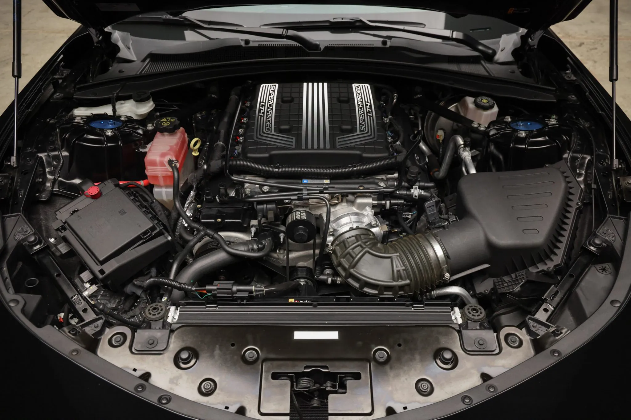 The supercharged 6.2-liter LT4 V8 was factory rated at 650 horsepower and 650 lb-ft of torque, which is routed to the rear wheels via a six-speed manual transmission and an electronic limited-slip differential. The car is equipped with a valved Corsa cat-back exhaust system. The engine oil and air filter were recently replaced.