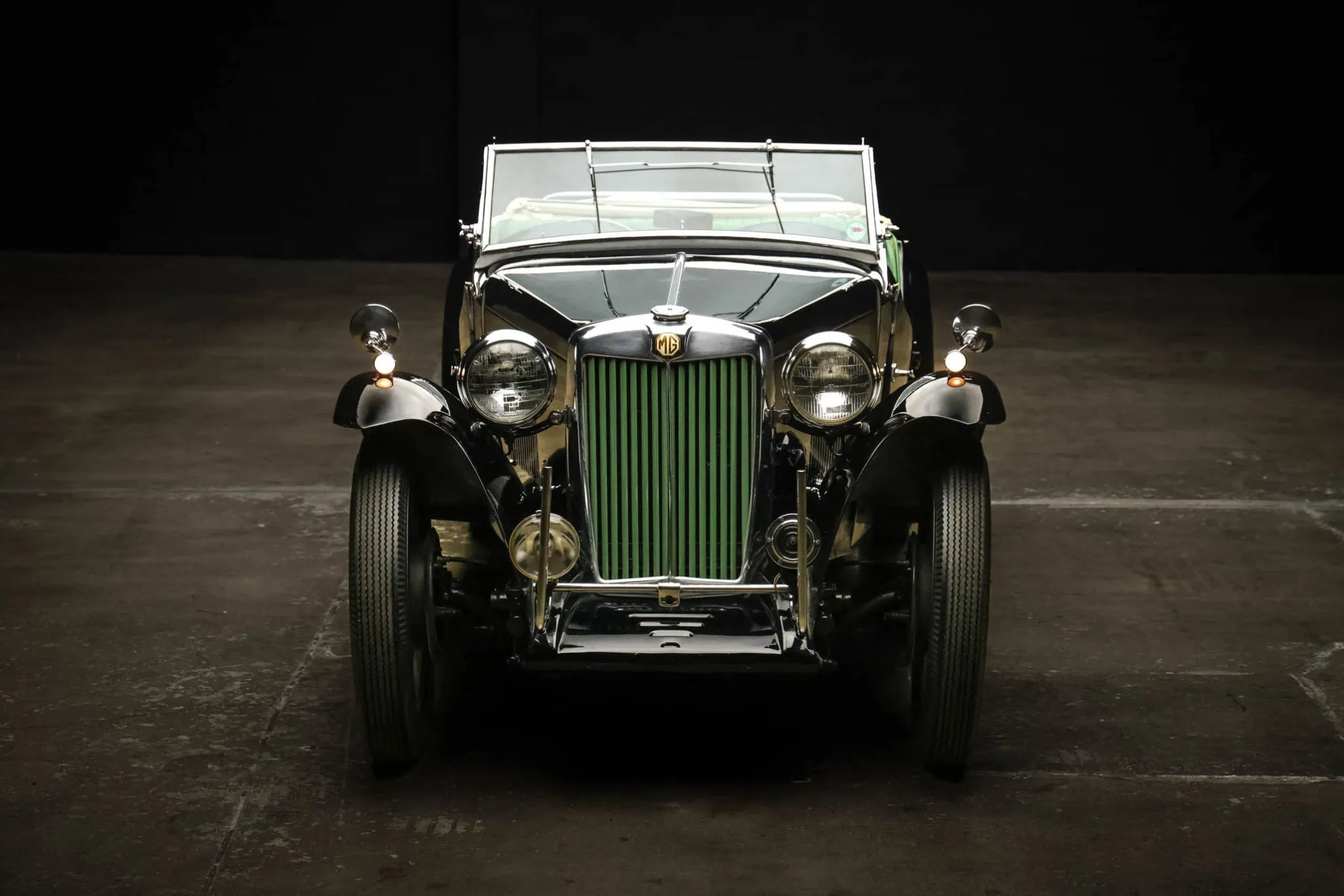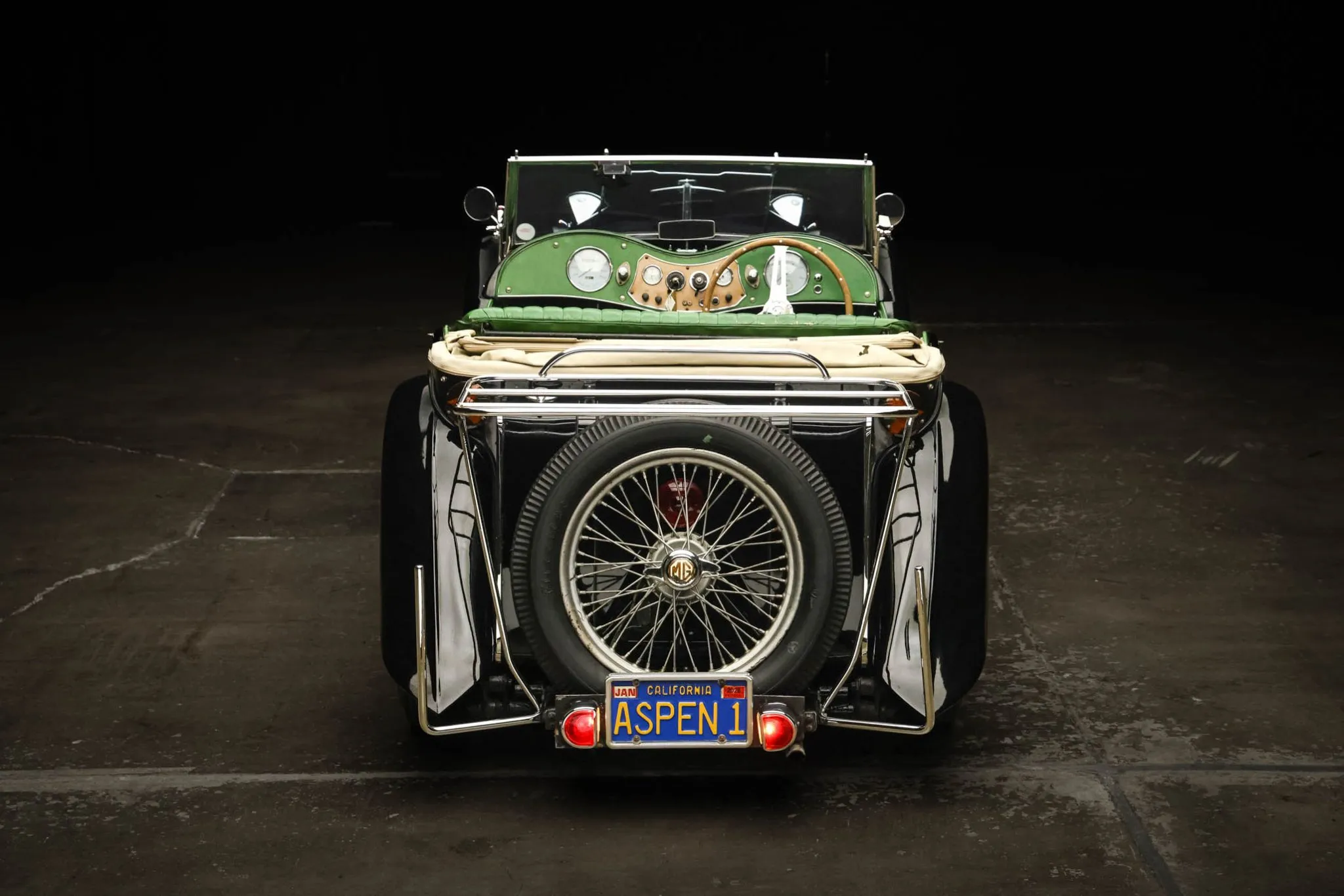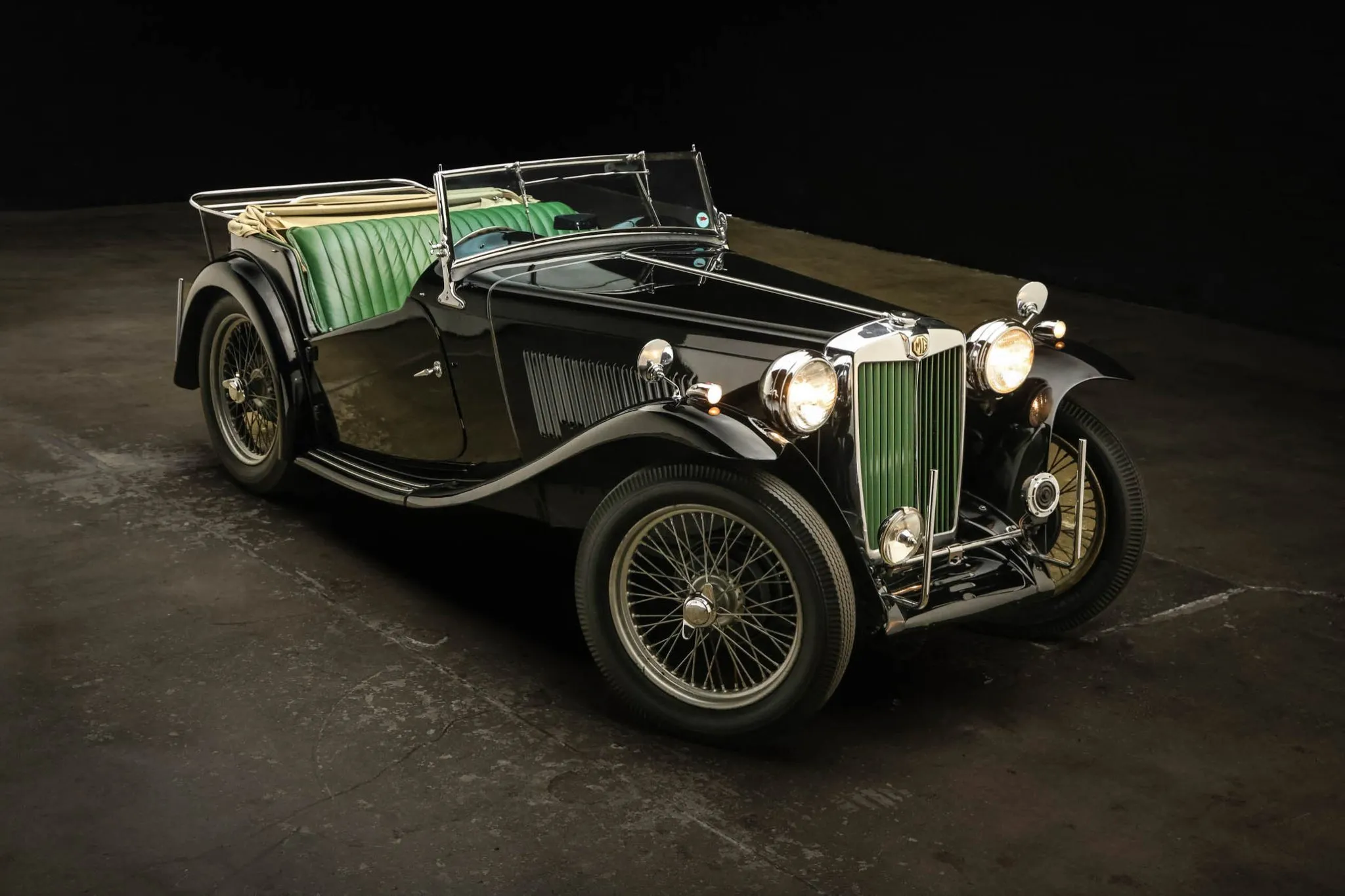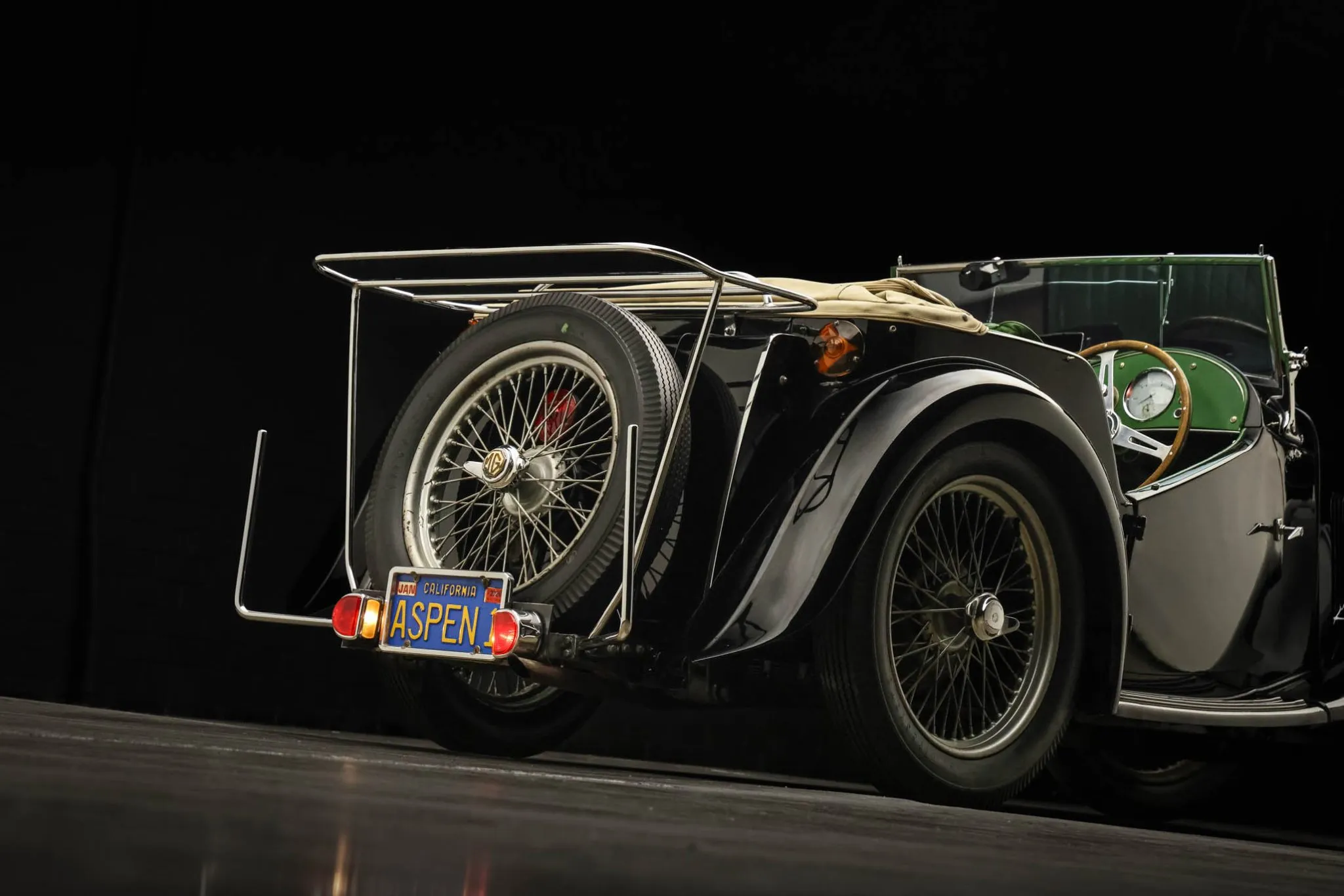 This 1949 MG TC is noted to have remained with the same family since 1964 and spent time in storage for a number of years. The car is finished in black with a tan soft top over green leather and is powered by a replacement 1,250cc inline-four paired with a four-speed manual transmission. It rides on 19″ knock-off wire wheels and is further equipped with a Lucas driving light, a luggage rack, and vertical bumper bars. Work in 2024 involved cleaning and servicing the dual SU carburetors as well as the cooling and fuel systems in addition to performing a valve adjustment. This TC s now offered on dealer consignment at no reserve with a car cover, removable side curtains, and a duplicate California title.