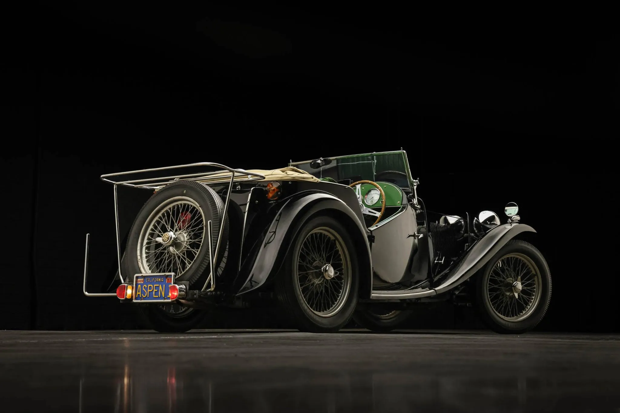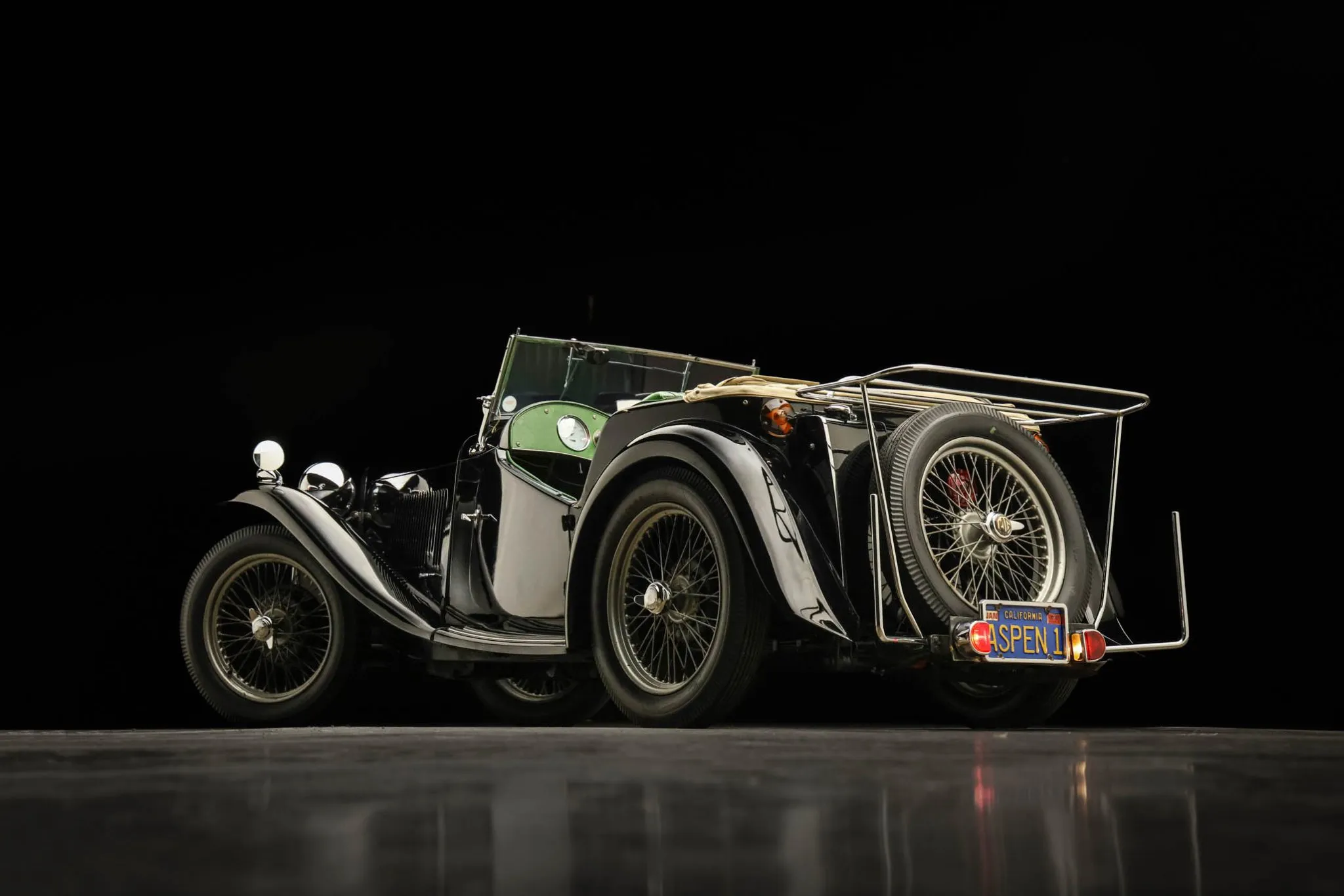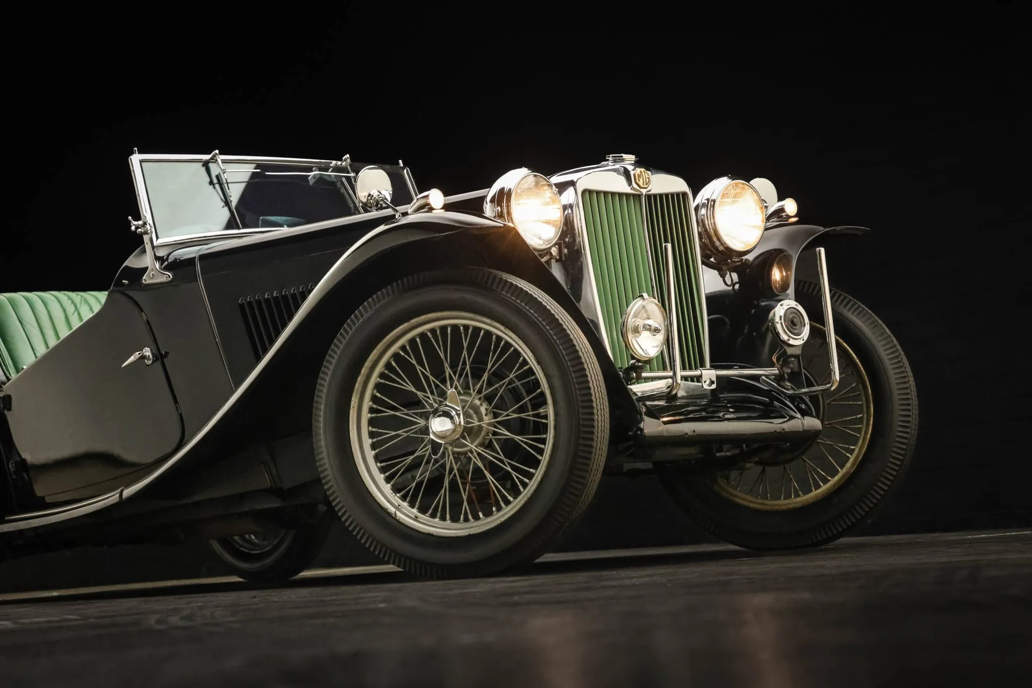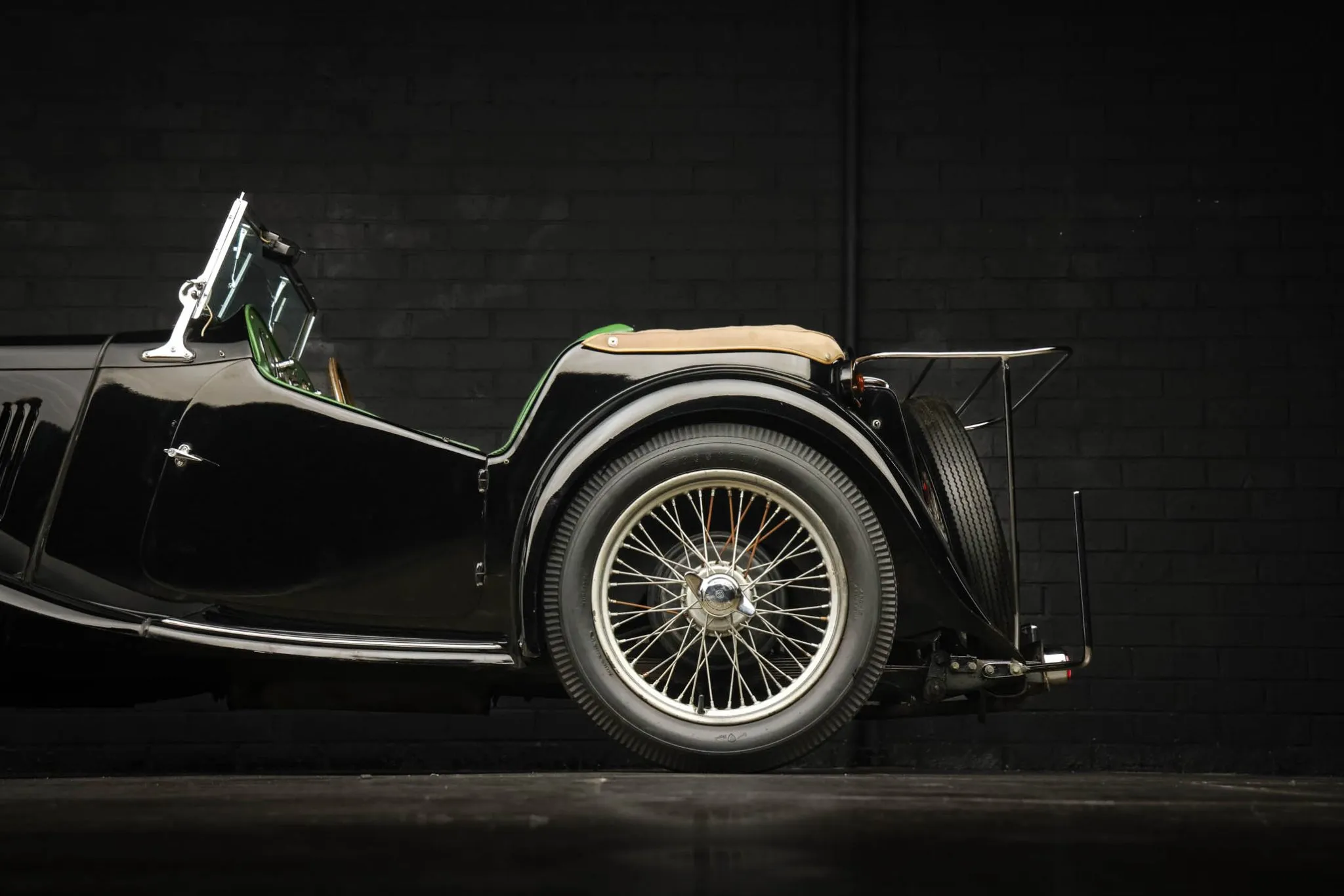 This 1949 MG TC is noted to have remained with the same family since 1964 and spent time in storage for a number of years. The car is finished in black with a tan soft top over green leather and is powered by a replacement 1,250cc inline-four paired with a four-speed manual transmission. It rides on 19″ knock-off wire wheels and is further equipped with a Lucas driving light, a luggage rack, and vertical bumper bars. Work in 2024 involved cleaning and servicing the dual SU carburetors as well as the cooling and fuel systems in addition to performing a valve adjustment. This TC s now offered on dealer consignment at no reserve with a car cover, removable side curtains, and a duplicate California title.